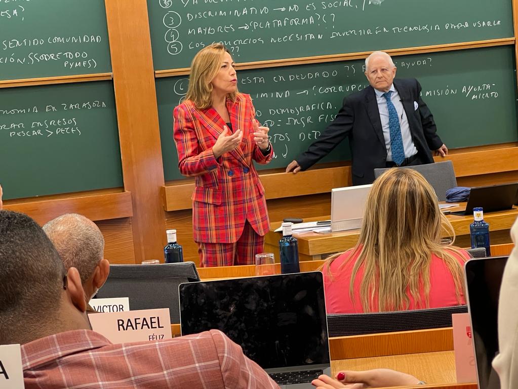 Por primera vez, y de la mano de la alcaldesa Natalia Chueca, una iniciativa del Ayuntamiento de Zaragoza se ha trasladado a las aulas de una de las escuelas de negocios más prestigiosas del mundo. Esta mañana, en la sede de IESE en Madrid, un grupo internacional de alumnos de alto nivel, que cursan el Master sobre Gestión Pública, han trabajado y debatido sobre el caso de éxito que elaboró el profesor José Ramón Pin Arboledas. "Volveremos ha salvado la vida de muchos comercios evitando cierres, dinamizando barrios; numerosos clientes han descubierto los comercios de proximidad y, de hecho, más del 90% de los usos se utilizan para comprar alimentos en el día a día", ha subrayado Natalia Chueca en su intervención ante medio centenar de expertos en administración pública.