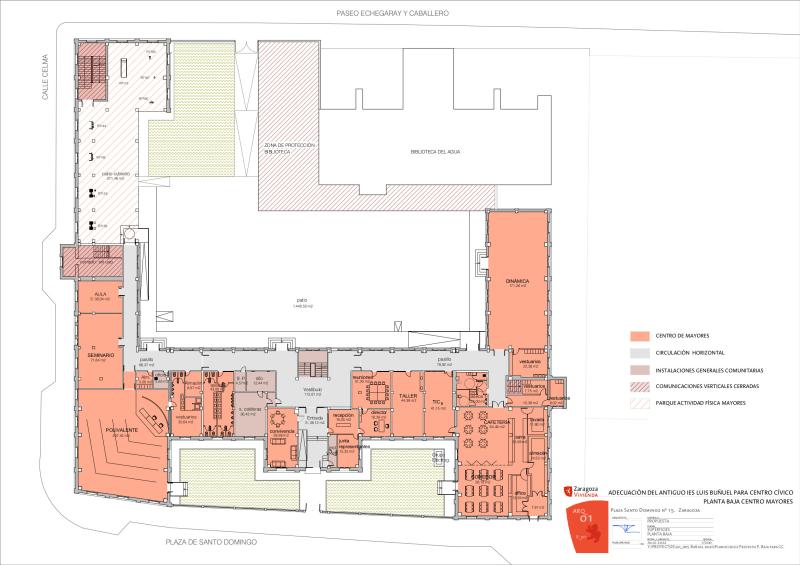 Esta propuesta contempla la creación de un comedor, con una superficie de 58 metros cuadrados y una cafetería de 64 metros cuadrados donde ahora se ubica la sala Azul y la antigua vivienda del conserje, además de un área de administración (55 metros cuadrados) que se situará en la zona de la entrada y un salón de actos de 207 metros cuadrados, a los que se suman los vestuarios y un almacén. El comedor tendrá un aforo de 48 plazas al día. El futuro centro de mayores dispondrá también de cuatro aulas para la realización de clases y talleres, una de ellas será una sala dinámica con más de 100 metros cuadrados. Las obras de esta primera fase consistirán en la adecuación del interior de la planta baja para lo que será necesario demoler forjados y tabiques y construir de nuevo el espacio. Casi todas las instalaciones interiores, así como la carpintería serán nuevas en la mayor parte de los casos, mientras que se rehabilitarán los exteriores. El centro de mayores será la primera fase de un proyecto que contempla la construcción de un centro cívico después de que el Área de Participación y Régimen Interior realizara un estudio sobre las necesidades de un equipamiento municipal de estas características a partir de las propuestas de distintos servicios. Este edificio cuenta además con un patio de 1.446 metros cuadrados útiles para la realización de actividades al aire libre, y un espacio exterior cubierto de 271 metros cuadrados en la alineación de la calle Celma.