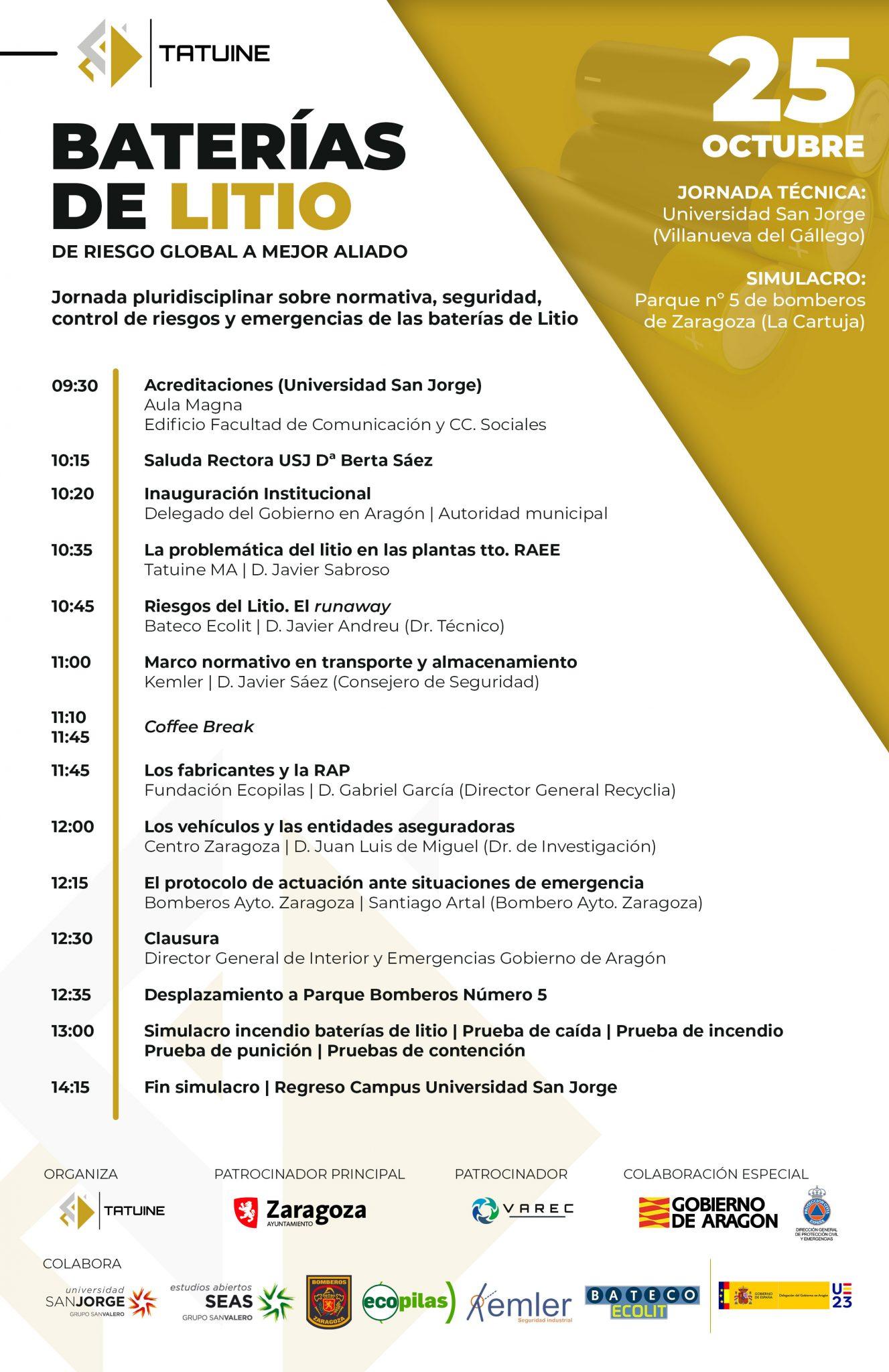 La jornada técnica se celebrará este miércoles, 25 de octubre, en la Universidad San Jorge (Villanueva de Gállego) con varias ponencias técnicas donde se abordarán distintos aspectos de la normativa, la seguridad y el control de riesgos de los medios propulsados por baterías de litio.