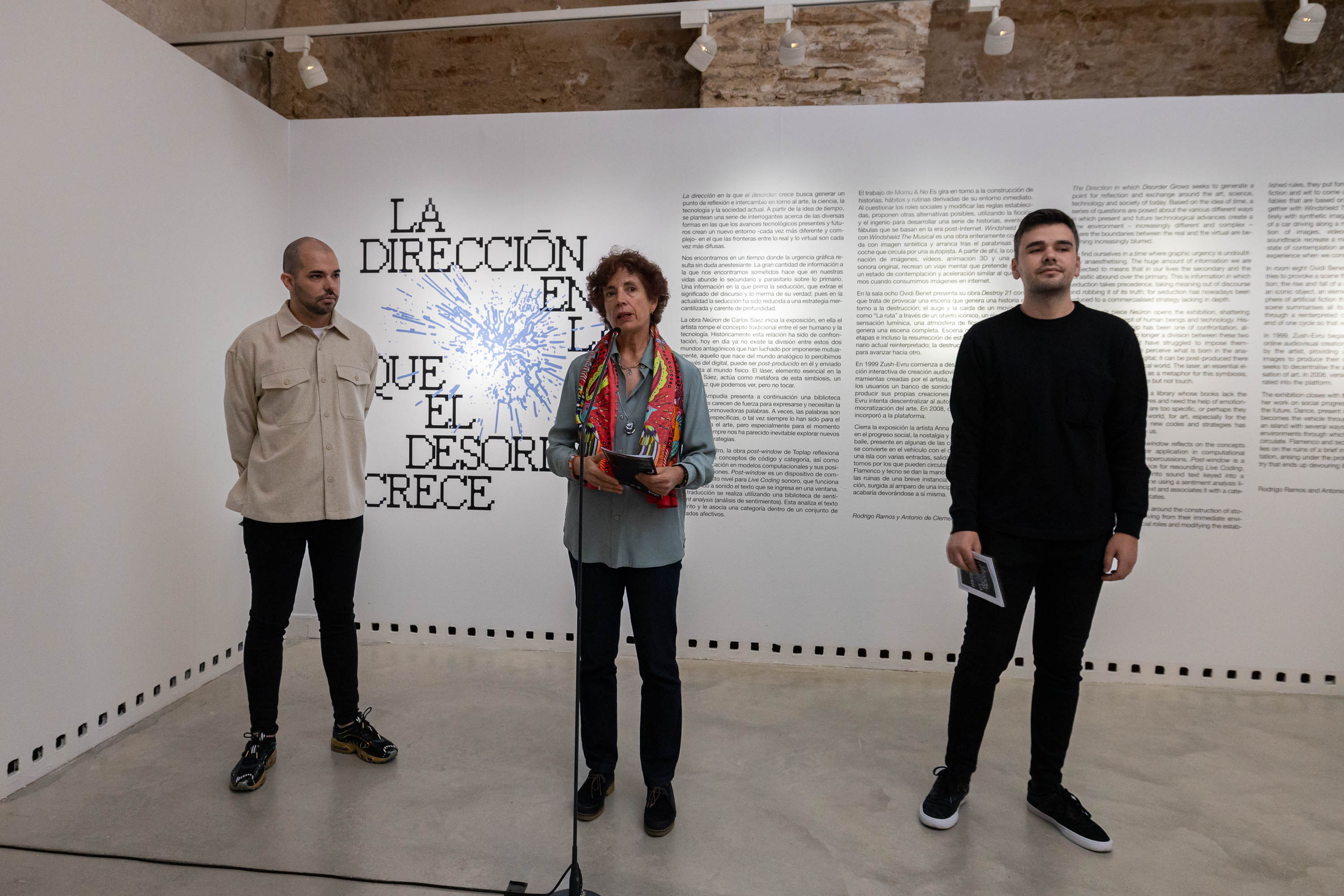 La exposición está integrada por la obra multidisciplinar de siete artistas con la que se quiere generar, según los comisarios de la misma, Rodrigo Ramos y Antonio de Clemente, "un punto de reflexión e intercambio en torno al arte, la ciencia, la tecnología y la sociedad actual. A partir de la idea de tiempo, se plantean una serie de interrogantes acerca de las diversas formas en las que los avances tecnológicos presentes y futuros crean un nuevo entorno cada vez más diferente y complejo- en el que las fronteras entre lo real y lo virtual son cada vez más difusas".