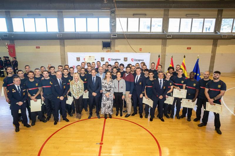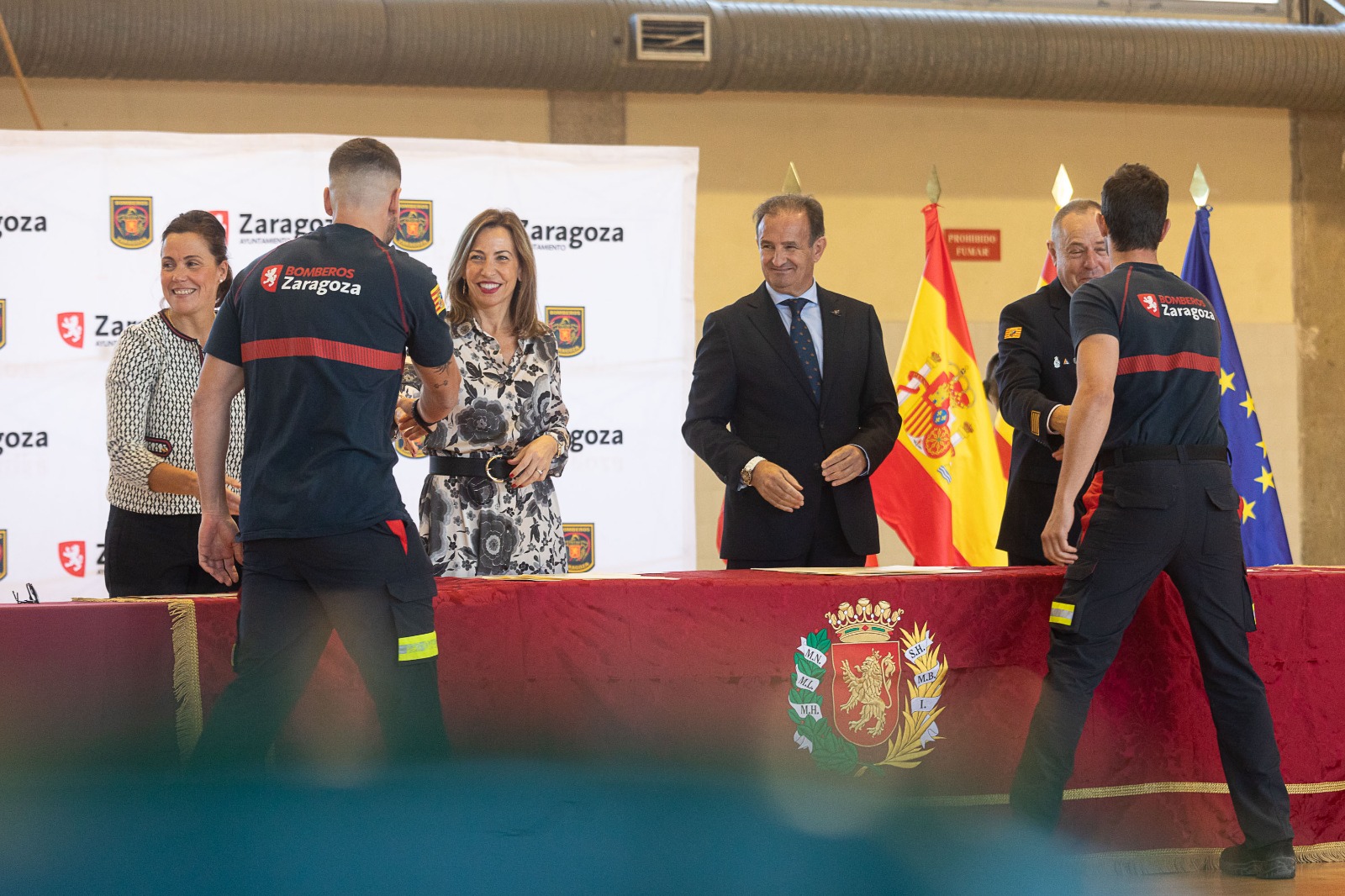La regidora ha presidido este acto, junto al consejero de Presidencia, Ángel Lorén, la concejal delegada de Bomberos, Ruth Bravo, y el jefe inspector de Bomberos de Zaragoza, Eduardo Sánchez, quienes han hecho entrega del diploma a los nuevos efectivos del Cuerpo Municipal, además de a los agentes que tras años de experiencia y dedicación han promocionado a puestos de mayor responsabilidad.