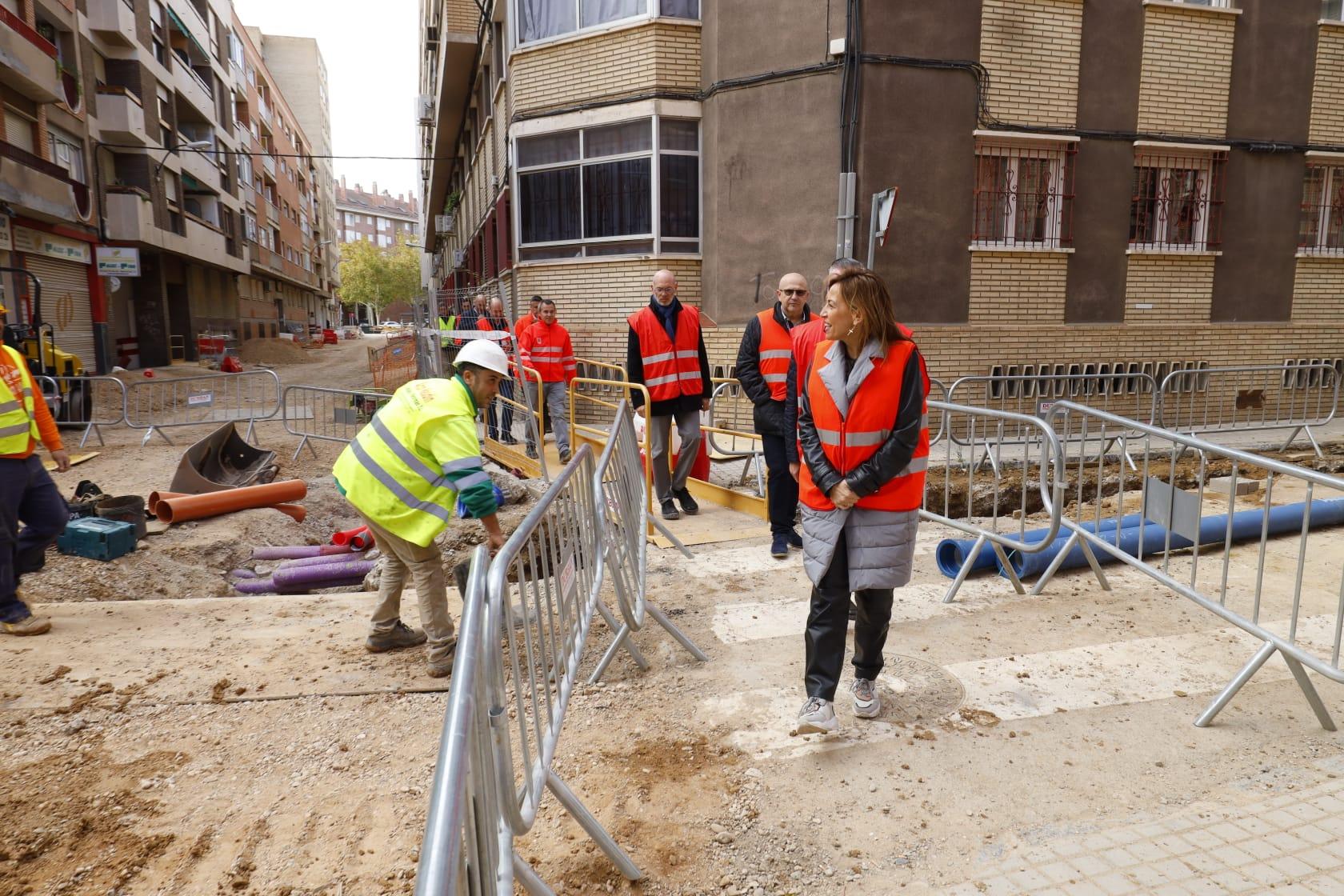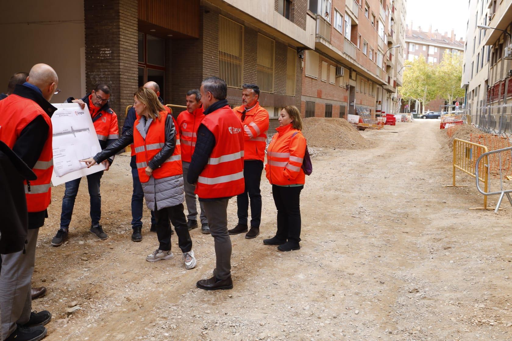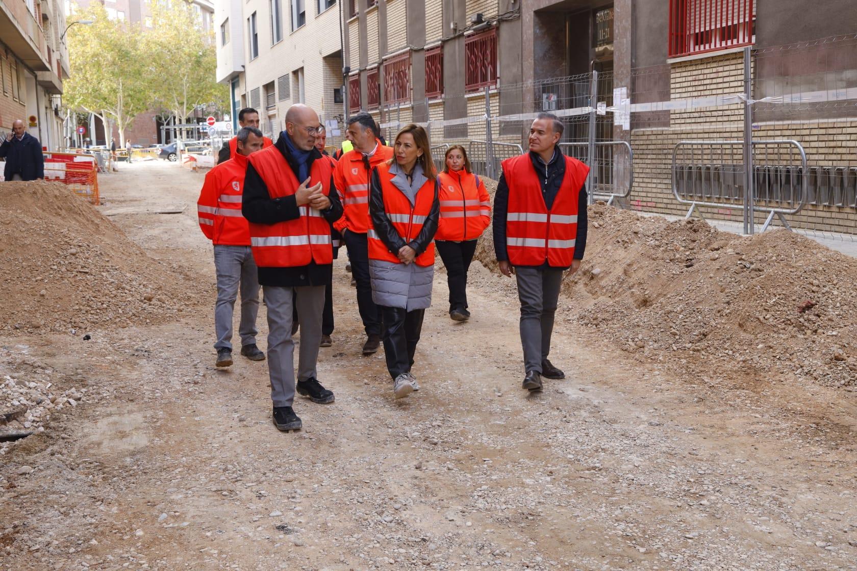 Así lo ha comprobado esta mañana la alcaldesa de Zaragoza, Natalia Chueca, quien ha visitado, junto a técnicos municipales de Infraestructuras y al consejero del ramo, Víctor Serrano, el avance de las obras, que ya finalizan la fase de ejecución y renovación de servicios en el subsuelo y pronto comenzará la urbanización exterior que dará como resultado la regeneración del espacio público.