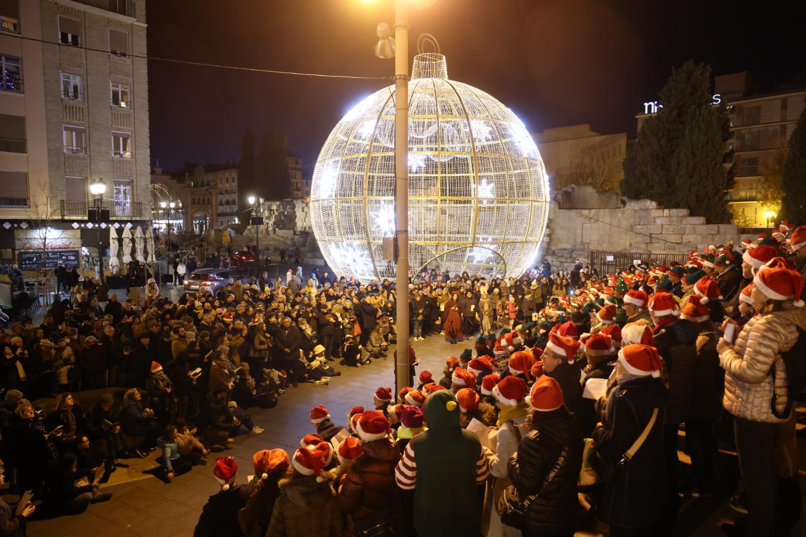 Más de 500 personas entre alumnos, profesores y familiares han entonado las canciones navideñas más conocidas de diferentes países. La alcaldesa de Zaragoza, Natalia Chueca, acompañada por la concejal delegada de Educación, Paloma Espinosa, ha estado presente en esta celebración multitudinaria, ya que, a pesar del frío, decenas de ciudadanos se acercaron a disfrutar del espíritu de la navidad e incluso a calentarse con un chocolate ofrecido por el Patronato de Educación y Bibliotecas.