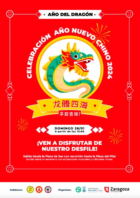 El Ayuntamiento de Zaragoza y el Instituto Confucio de la Universidad de Zaragoza, celebran el Año Nuevo Chino 2024 con un pasacalles que tendrá lugar el próximo domingo, 28 de enero. La consejera de Cultura, Educación y Turismo, Sara Fernández, acudirá a la salida del pasacalles que tendrá lugar, a partir de las 12,00 horas, desde la Plaza de Sas, para recorrer la calle Alfonso I y culminar en la Plaza del Pilar.