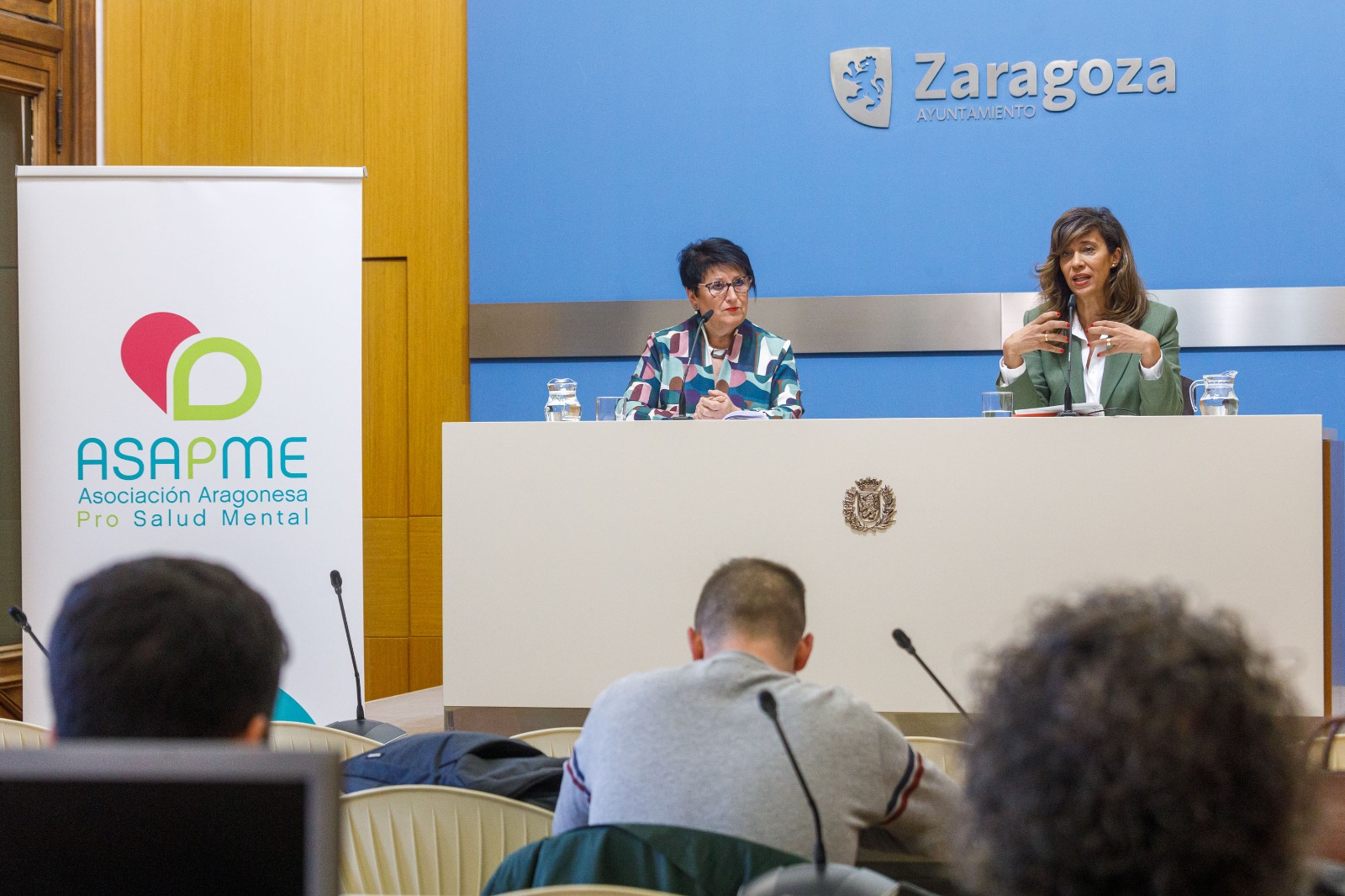 La consejera de Políticas Sociales, Marian Orós, acompañada por la gerente de ASAPME-Aragón, Ana López, ha resaltado la importancia de trabajar en favor de la salud mental, pues "engloba nuestro bienestar emocional, psicológico y social, es decir, nuestro bienestar general de pensamiento, sentimiento y comportamiento". "Es imprescindible cuidarlo", ha afirmado Orós, quien ha insistido en que "el incremento de la soledad no deseada, el aislamiento, la fragmentación de las ciudades y en definitiva la disminución en la calidad de vida de las personas ha puesto de manifiesto la necesidad de hacer nuestras ciudades más humanas".