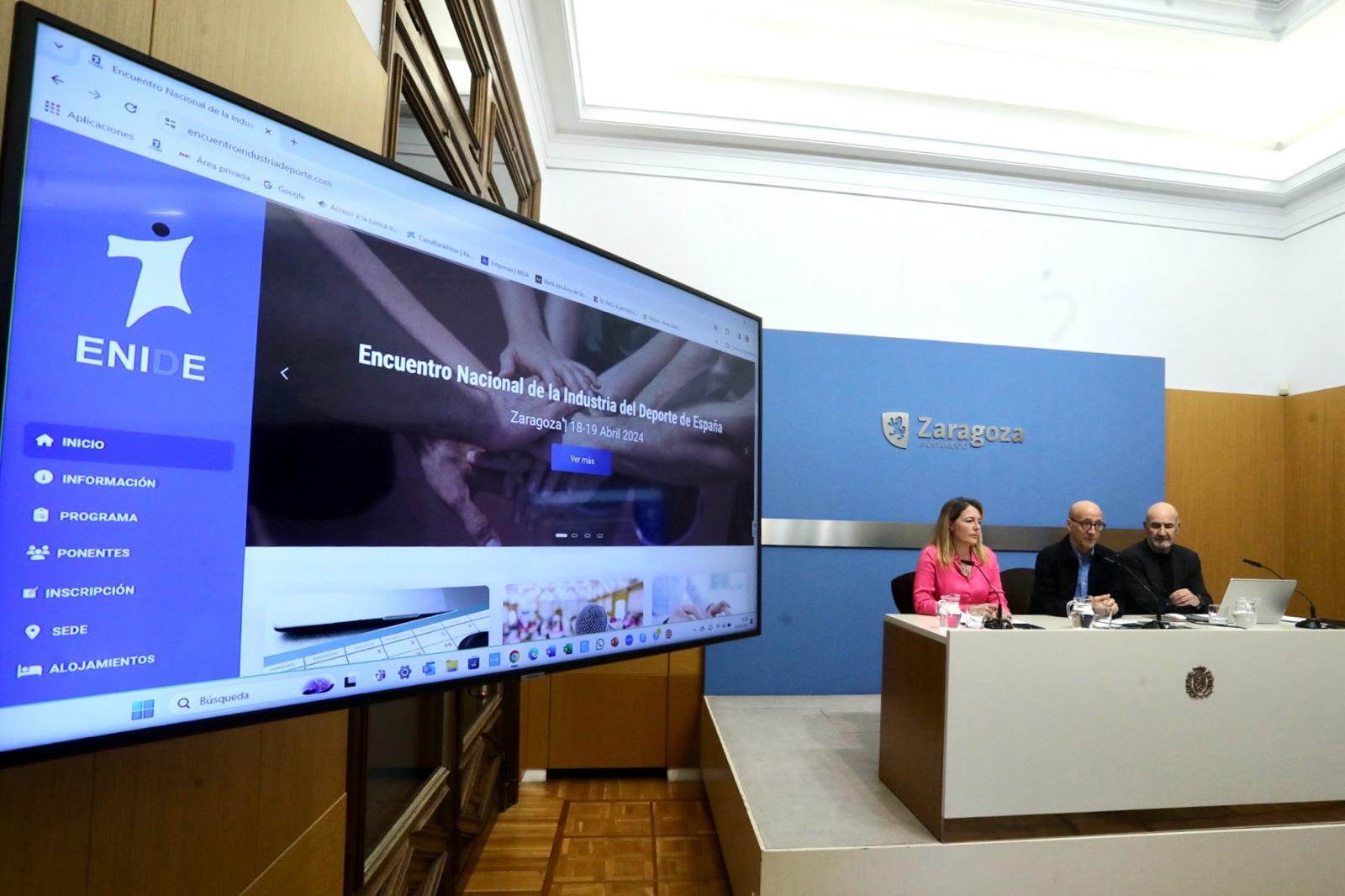 El Encuentro Nacional de la Industria del Deporte que los días 18 y 19 de abril se celebrará en Zaragoza con la participación de una veintena de ponentes de prestigio. El evento ha sido presentado en el Ayuntamiento de Zaragoza por el concejal delegado de Deportes, Félix Brocate, el presidente de la Federación de Asociaciones de Gestión del Deporte de España (FAGDE), Fernando París, y la presidenta de la Asociación Aragonesa de Gestores del Deporte (GEDA), Raquel Sancho. Cuenta con el patrocinio del Ayuntamiento de Zaragoza y el Consejo Superior de Deportes (CSD).