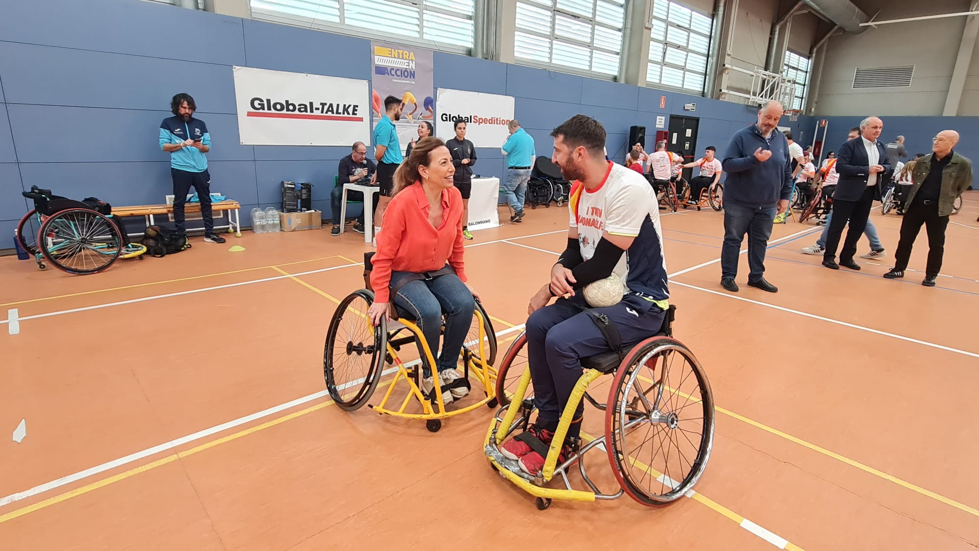 La alcaldesa de Zaragoza, Natalia Chueca, no ha querido perderse esta cita de deporte inclusivo y, en declaraciones a los medios, ha afirmado que es "una gran lección ver la agilidad mental y física que se necesita para disputar de este torneo de balonmano en silla de ruedas".