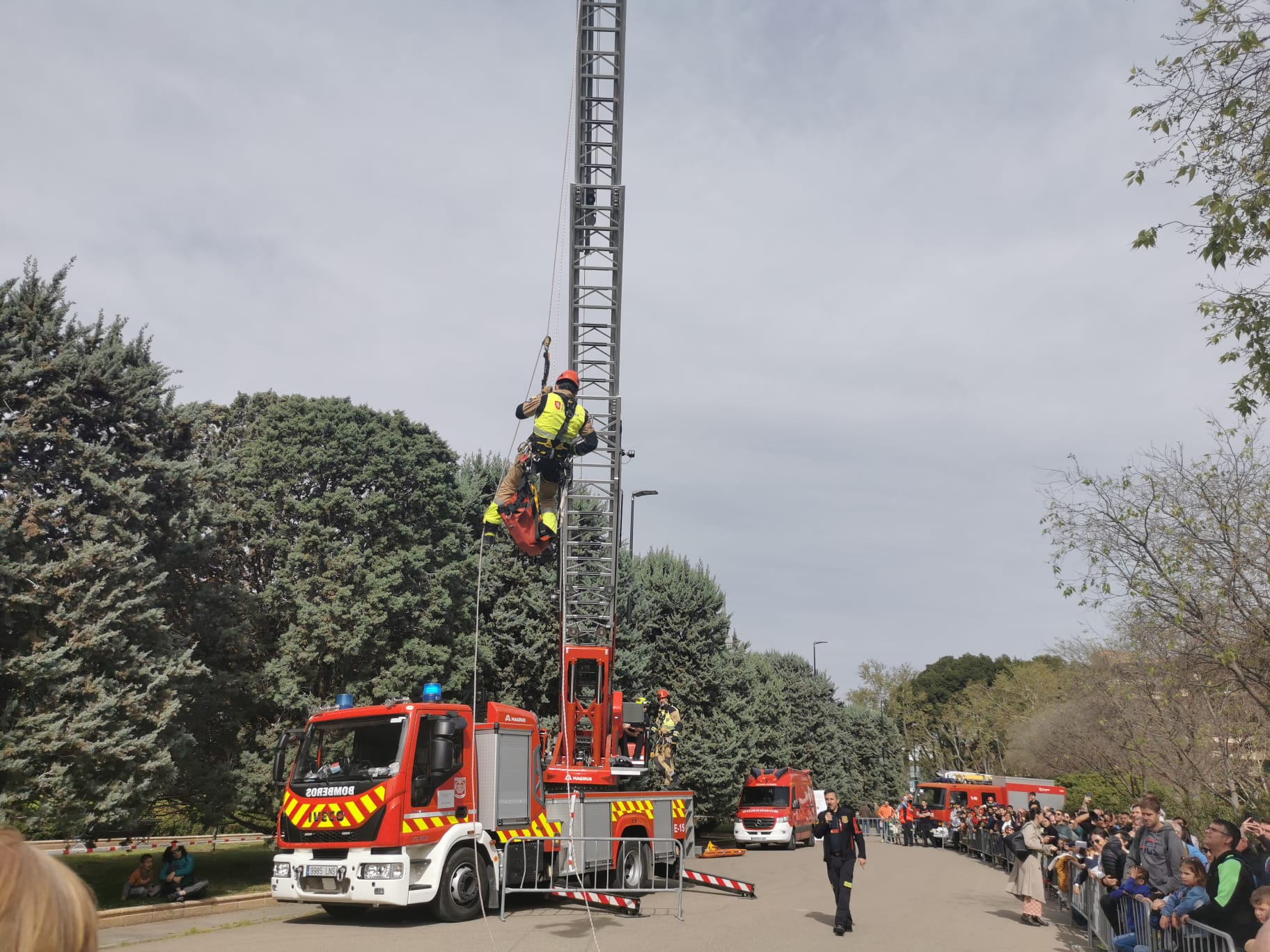 Los Bomberos de Zaragoza realizan un simulacro de rescate en altura en el Parque Grande