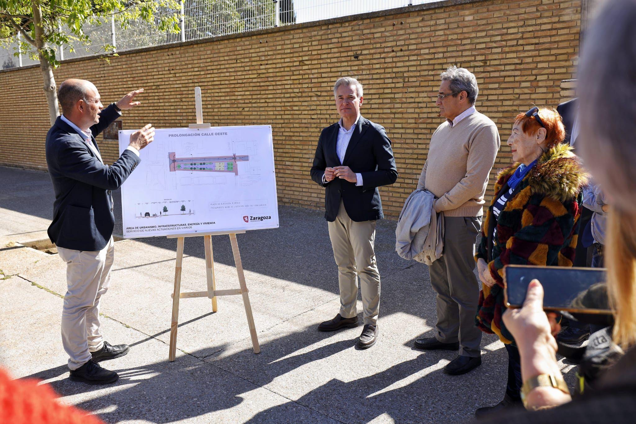 Esta calle es una antigua reivindicación vecinal y se trata de uno de los acuerdos alcanzados con el Grupo Municipal de Vox durante la elaboración del Presupuesto municipal de 2024 a través de la negociación. "En concreto, las obras proyectadas se desarrollan en terrenos, que eran tierras de labor en su origen, obtenidos mediante una expropiación en septiembre de 2022 y que están vallados con un muro perimetral y ubicados entre las calles Iglesia y Valiente Aznar en la prolongación de la calle Oeste, junto al colegio La Concepción", ha explicado el consejero de Urbanismo e Infraestructuras, Víctor Serrano, quien ha visitado la zona junto al portavoz de Vox en el Ayuntamiento de Zaragoza, Julio Calvo.