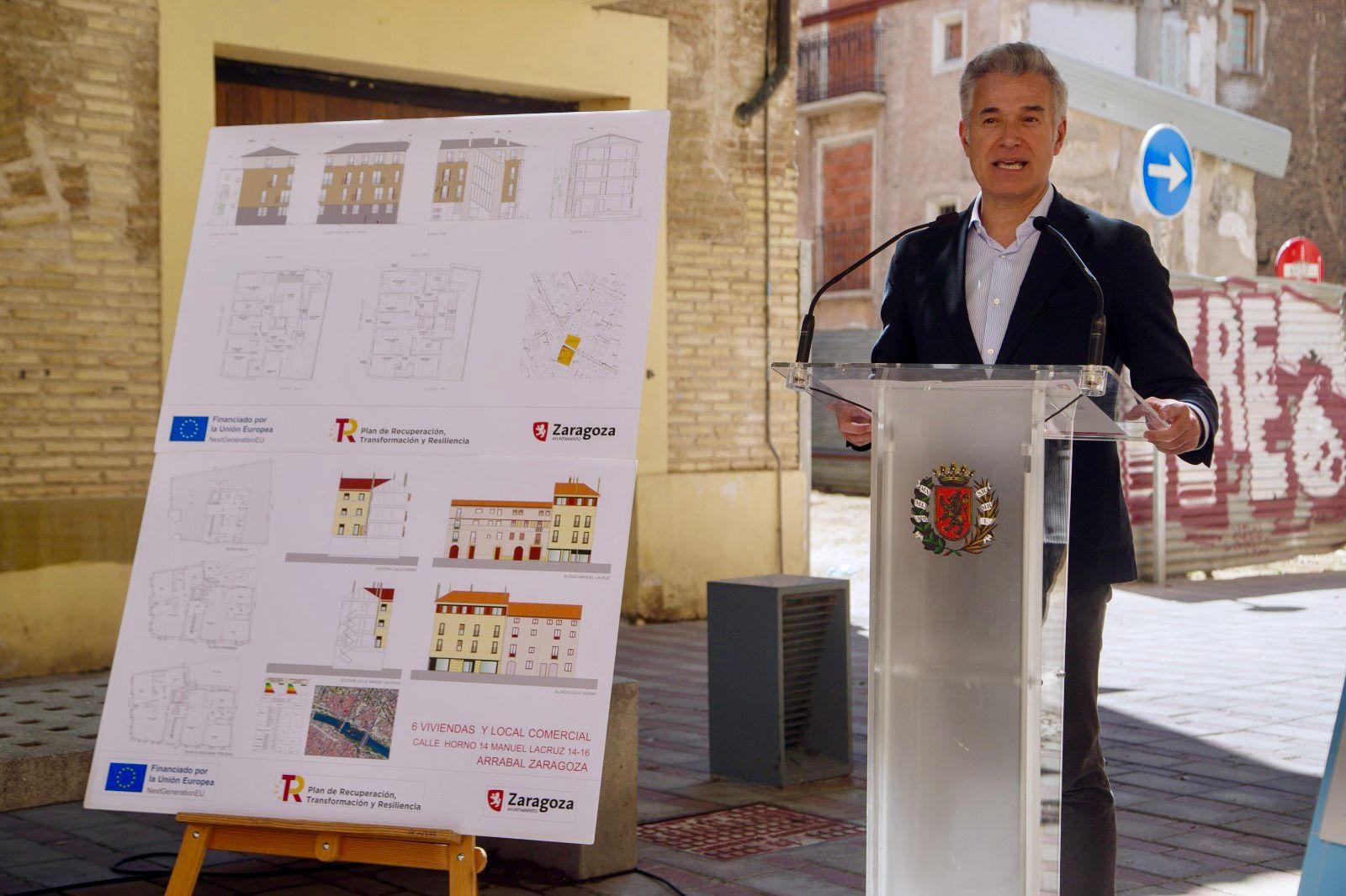 El Ayuntamiento de Zaragoza construirá 39 nuevas vivienda de alquiler asequible en cuatro situados en el Casco Histórico (Pignatelli 88 y San Blas 96) y en El Rabal (Manuel Lacruz 10 y del Horno 14) con una inversión global de 5.925.439,93 euros, de los que 1.584.165 proceden de fondos NextGeneration de la Unión Europea a través de pogramas de ayuda en materia de rehabilitación residencial y vivienda social del Plan de Recuperación, Transformación y Resiliencia. Esta subvención es fruto de los acuerdos alcanzados entre el Ministerio de Transportes, Movilidad y Agenda Urbana (MITMA) y el Gobierno de Aragón.