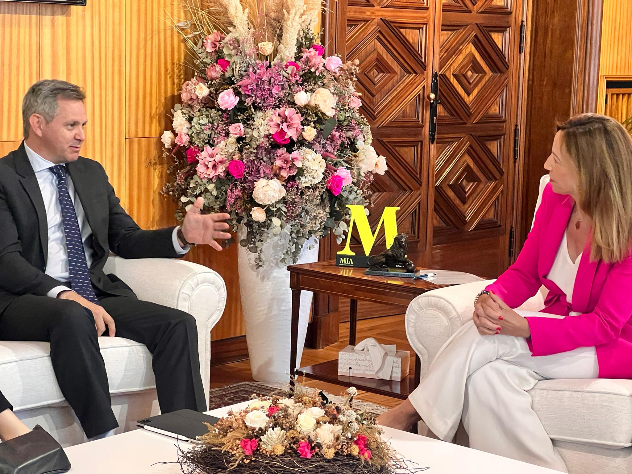 La alcaldesa de Zaragoza, Natalia Chueca, mantuvo ayer un encuentro institucional con el presidente de Mercasa, José Miñones, en el Ayuntamiento de Zaragoza para abordar y compartir su visión sobre la estrategia que permita fomentar algunos de los proyectos de Mercazaragoza.