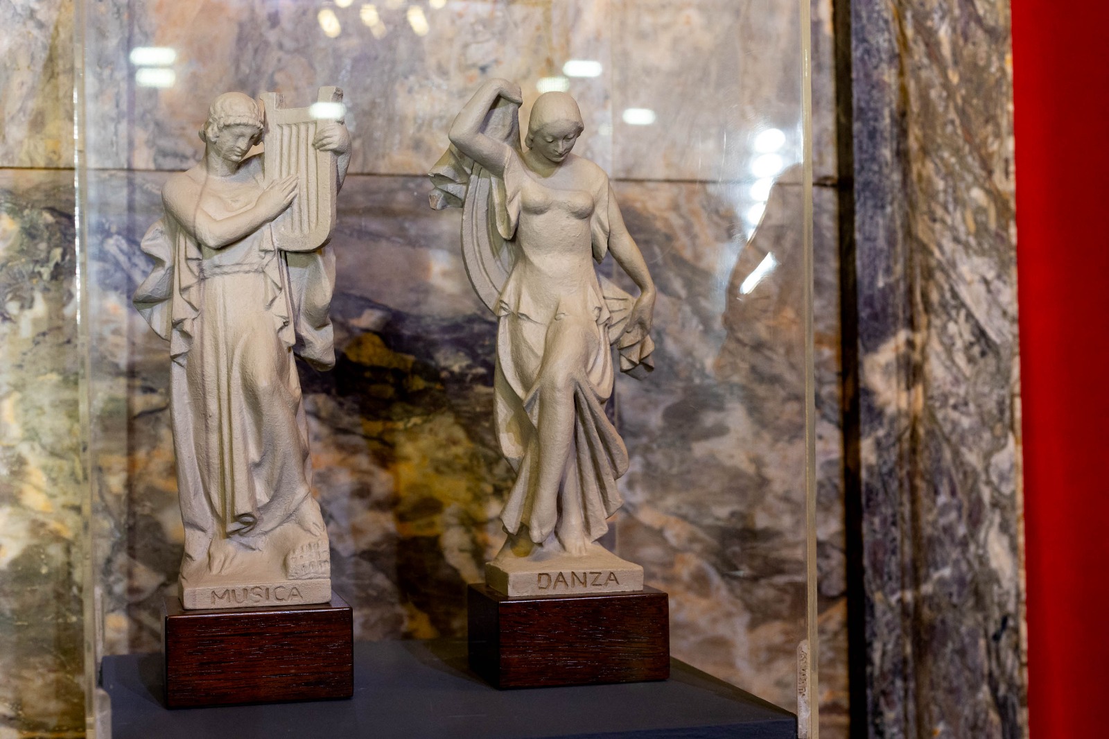 Entre 1936 y 1937, Félix Burriel realizó los bocetos de cuatro figuras de composición sencilla, pero con una gran delicadeza que representan a un grupo de Musas o Alegorías de las Artes identificadas con la escena: la Música, la Danza, la Comedia y la Tragedia. Se decía que estas musas descendían a la tierra para susurrar ideas a los mortales y, con ello, despertar la creatividad y la inspiración de poetas y artistas.