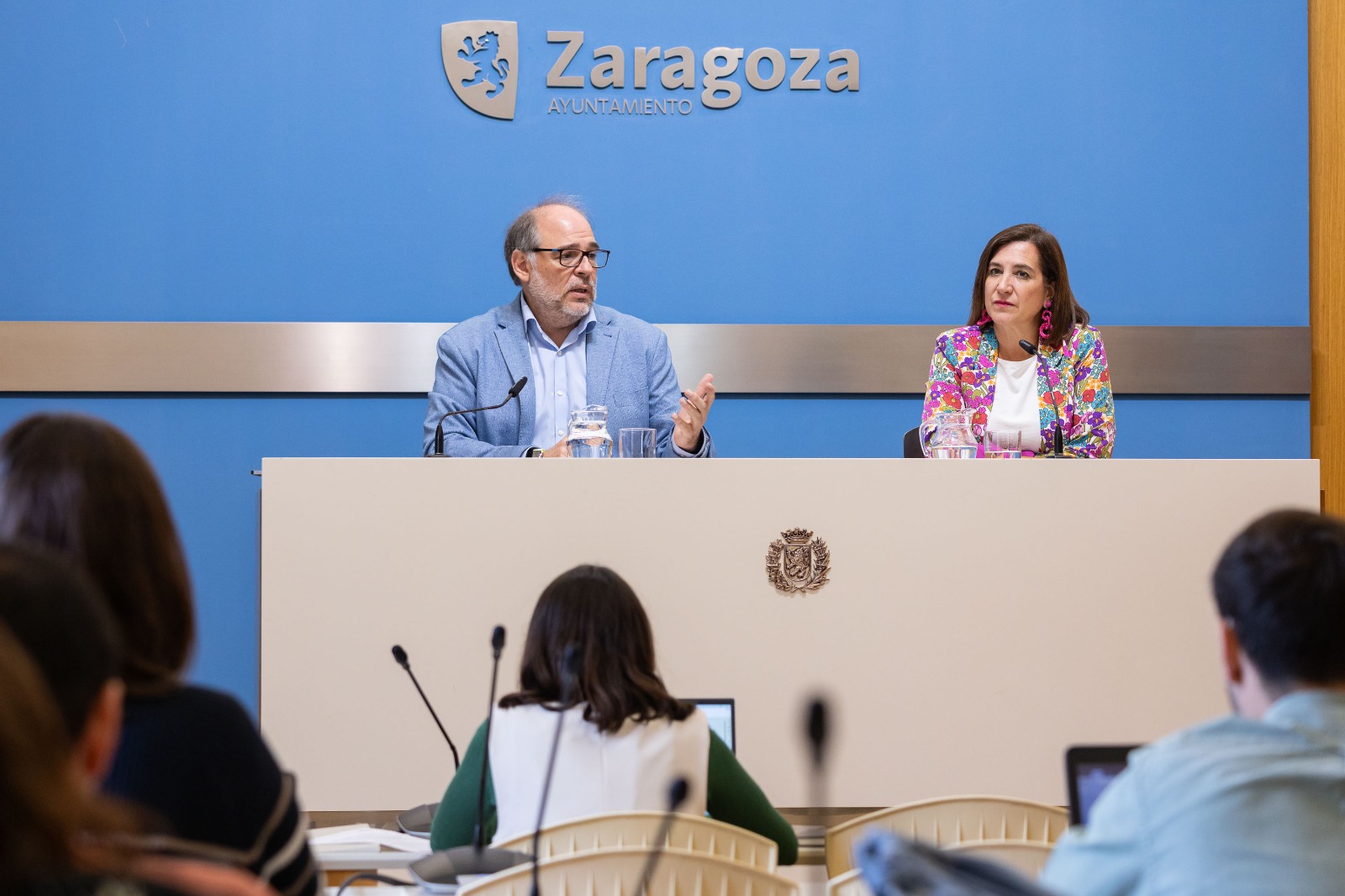 La consejera de Cultura, Sara Fernández, acompañada por el consejero de Participación, Alfonso Mendoza, han presentado esta novedad que se incorpora este año a la Ofrenda de Frutos y que figura en el convenio firmado con las Casas Regionales para la programación cultural durante las Fiestas.