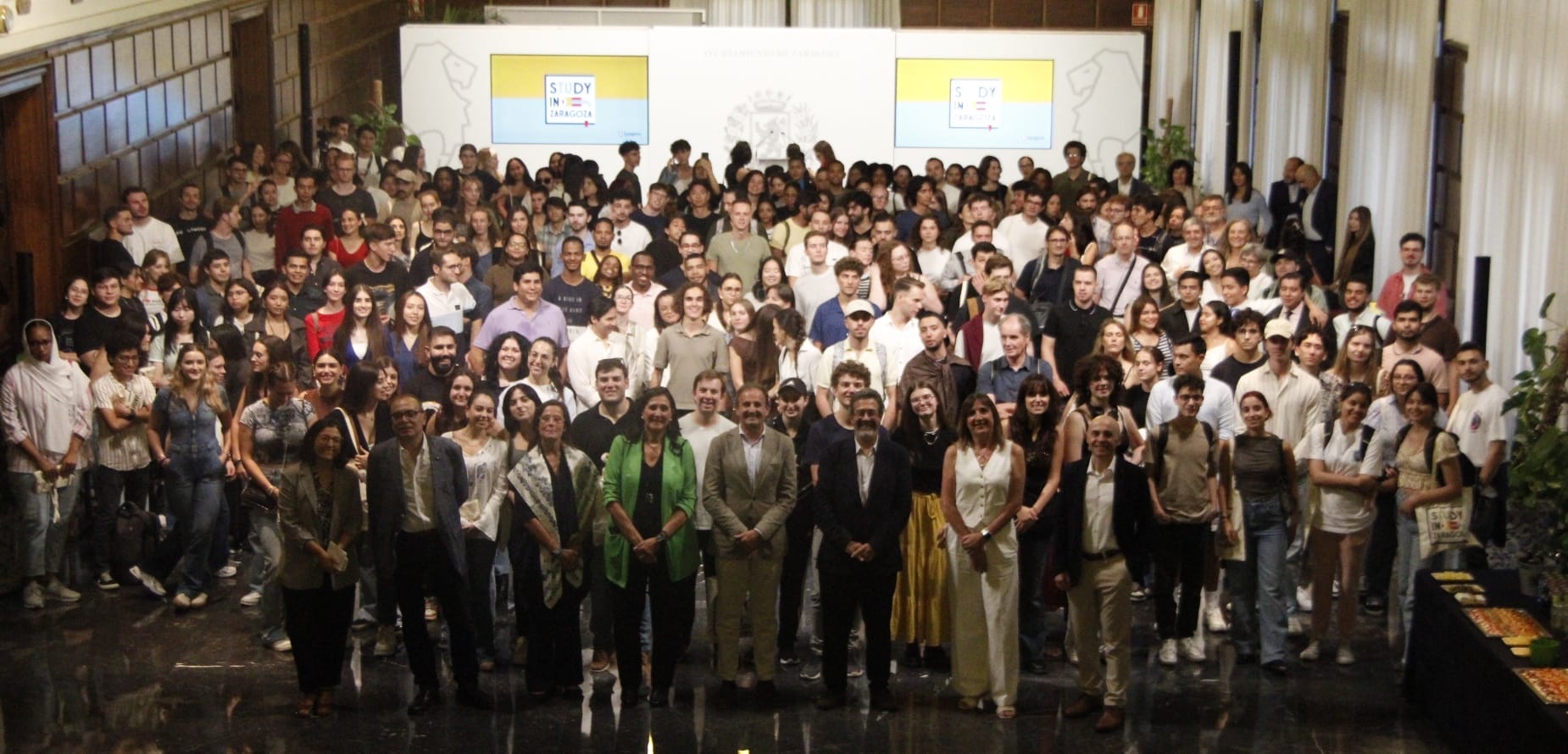 El Ayuntamiento de la capital aragonesa ha dado la bienvenida a más de 200 alumnos internacionales dentro del programa Study in Zaragoza. El Salón de Recepciones de la Casa Consistorial ha sido el lugar del encuentro en el que jóvenes estudiantes de la Universidad de Zaragoza, Universidad San Jorge (USJ), ESIC, CESTE, Zaragoza Logistics Center (ZLC) han podido conocer más a fondo la ciudad y poder hacer networking entre ellos.