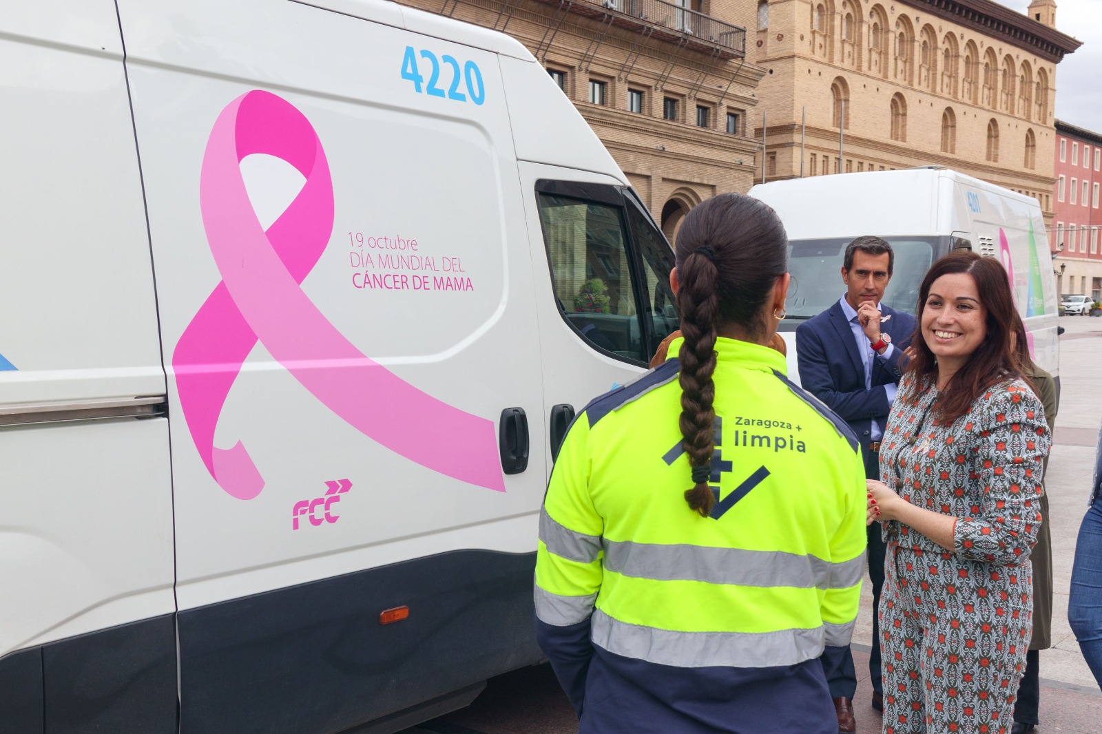 Así, esta semana los operarios de la contrata de Limpieza Pública, FCC Medio Ambiente, lucen un lazo rosa en sus uniformes y vehículos. Además, dos furgonetas han sido viniladas expresamente con este motivo.