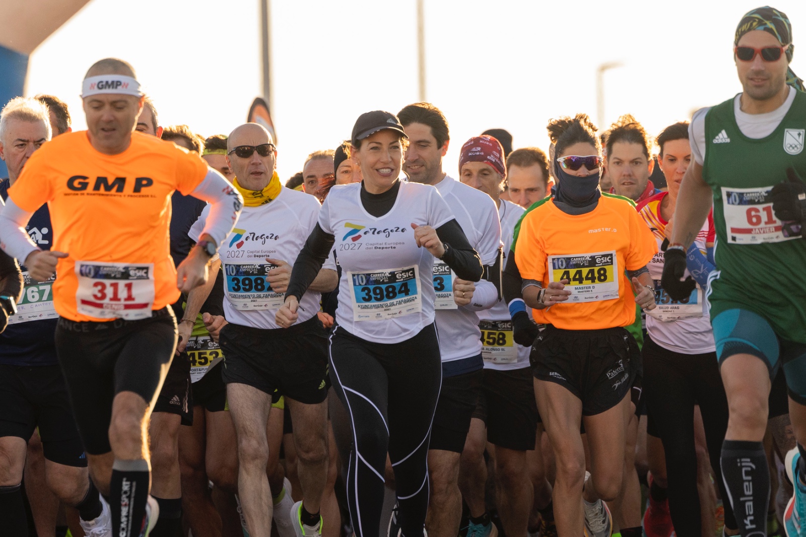 La alcaldesa de Zaragoza, Natalia Chueca, y el concejal delegado de Deportes, Félix Brocate, han participado este domingo en la carrera de empresas ESIC, que ha cumplido su décimo aniversario con una edición de récord. Han participado unos 5.000 corredores de más de 400 empresas.