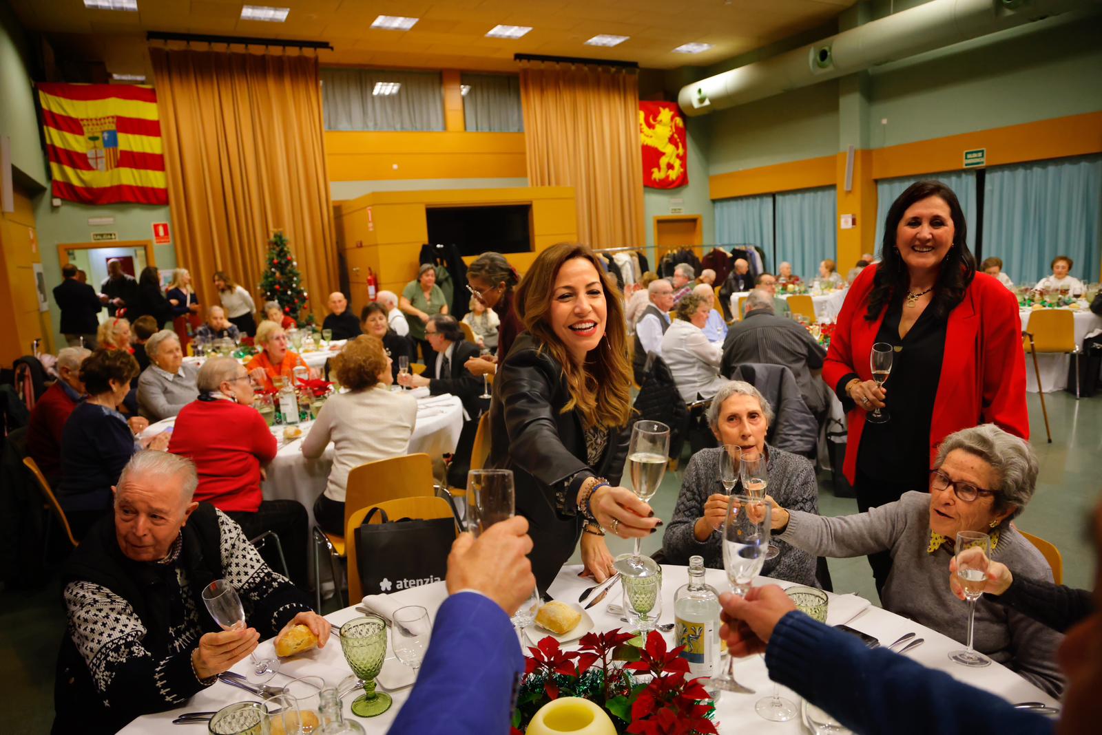 La alcaldesa de Zaragoza, Natalia Chueca, ha visitado esta tarde de Nochebuena a los trabajadores municipales, entidades, voluntarios y personas mayores que cenan en compañía en el Centro de Convivencia de Mayores Pedro Laín Entralgo. Esta cena colectiva para evitar la soledad no deseada busca animar en estas fechas de recuerdo y celebración a las personas mayores que no pueden celebrarlas en compañía de sus seres queridos, ofreciendo un espacio de convivencia con otros usuarios de la red municipal de centros de convivencia.