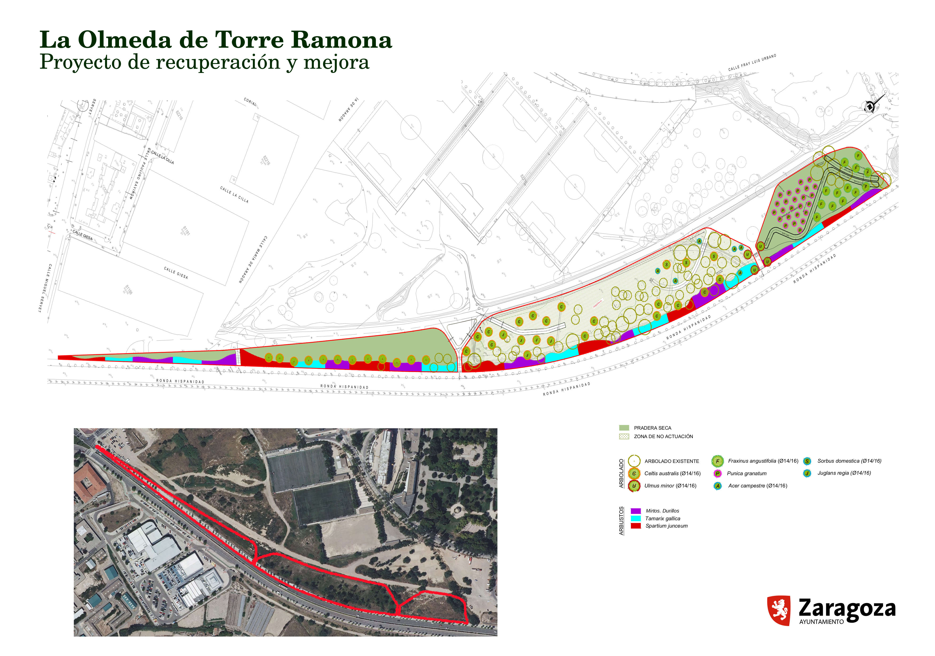 La recuperación de la Olmeda de Torre Ramona es un proyecto incluido dentro El Bosque de los Zaragozanos, gracias al cual el barrio de las Fuentes recuperará este espacio para el disfrute de toda la ciudadanía, ampliándolo para crear a su alrededor un bosque urbano de 2,2 hectáreas y casi un kilómetro de longitud. El objetivo es que los trabajos puedan realizarse antes de que termine este año.