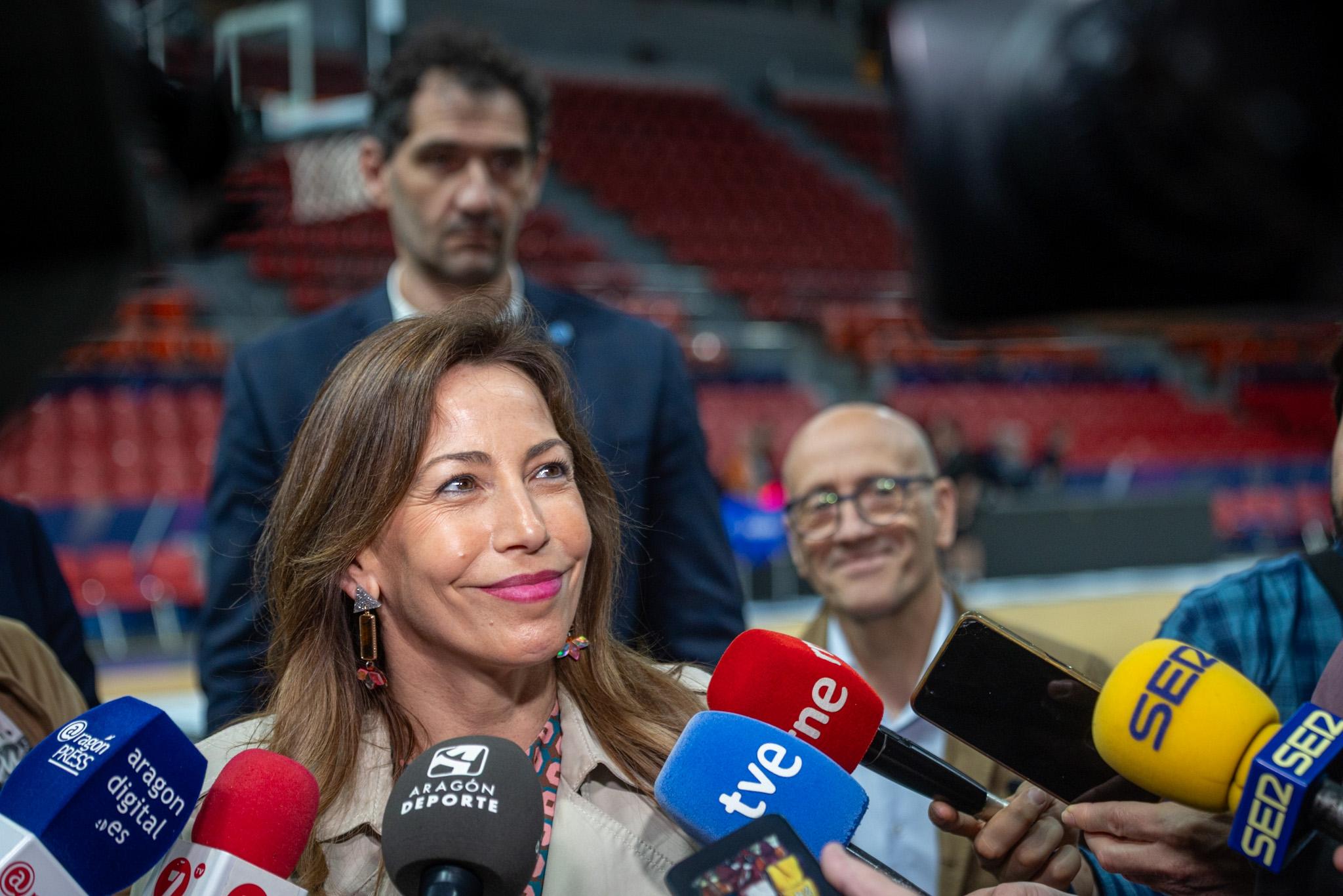 El Pabellón Príncipe Felipe está completamente preparado para acoger, desde este miércoles hasta el domingo 13 de abril, la Final Six de la Euroliga Femenina de baloncesto. La alcaldesa de Zaragoza, Natalia Chueca -acompañada del concejal delegado de Deportes, Félix Brocate, y el presidente de FIBA Europa, Jorge Garbajosa- ha visitado esta mañana la instalación municipal, en la que se van a dar cita los seis mejores equipos del continente, en busca del máximo título europeo.