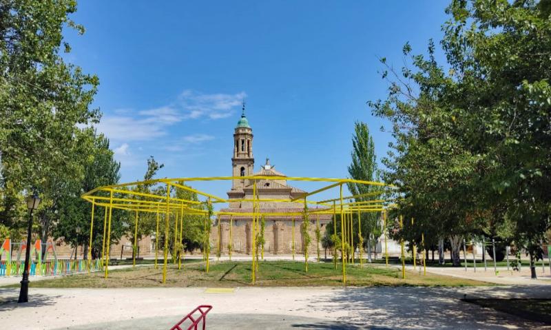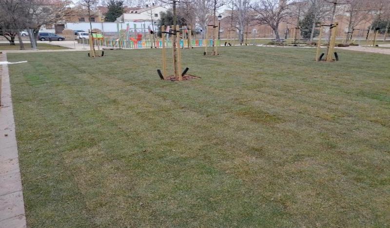 Ahora se ha optado por eliminar dicha estructura metálica y realizar un diseño alternativo que permita un parque más naturalizado, con mejor cobertura de arbolado y zona verde que genere sombra, actuando esta zona como refugio climático. También se ha actualizado el sistema  de riego, para hacerlo más eficiente.