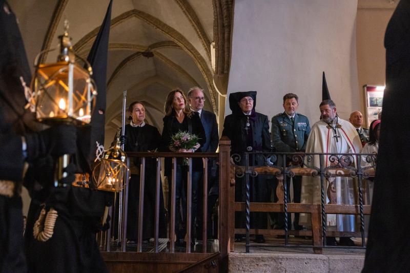 Natalia Chueca se ha acercado a la cofradía de El Silencio, en el corazón de El Gancho, donde ha habido una oración previa por las mujeres que se incorporaron hoy hace 50 años a esta hermandad. Esta procesión que se ha caracterizado por el silencio que solo es roto por el sonido de las heráldicas y los aplausos espontáneos de los presentes ante el esfuerzo de la salida, a pulso, de los pasos del Cristo de la Agonía y de la popular Virgen Blanca.