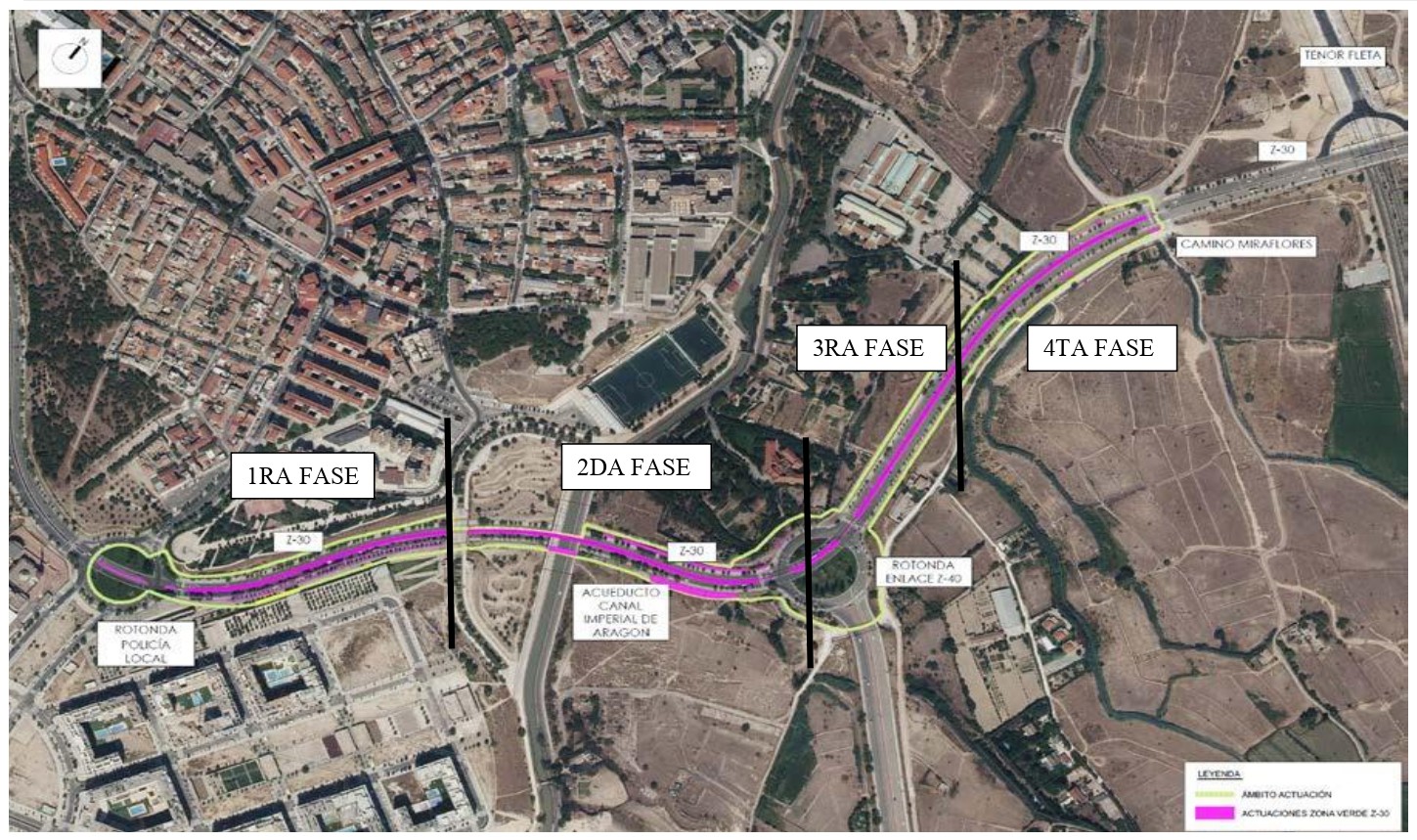 Las actuaciones a realizar en este tramo de mediana y en las márgenes de la Z-30, comprendido entre la rotonda de la Policía Local (Parque Venecia) y la intersección de la Z-30 con Camino de Miraflores (San José), supondrán la eliminación de la vegetación arrancada, el aporte de relleno en mediana para recuperar cota, la reposición de planta arbustiva, la reparación de circuitos de riego por goteo y relleno de alcorques de arbolado, la reposición de cuatro ejemplares arbóreos y la resiembra de césped.