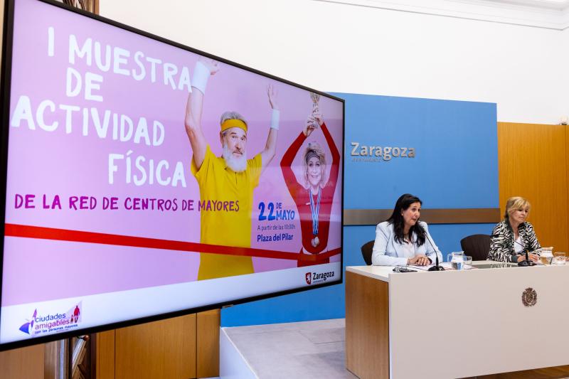 La concejal delegada del Mayor del Ayuntamiento de Zaragoza, Paloma Espinosa, y la jefa de la Unidad del Mayor, Fernanda Blasco, ha presentado hoy este evento en el que van a participar 450 personas mayores procedentes de 18 centros. Entre las 10.15 y las 14.15 horas, irán mostrando coreografías y habilidades de mantenimiento aprendidas en los talleres de los centros que, de una u otra manera, tienen como objetivo principal la práctica de la actividad física de manera regular (al menos una vez a la semana) como medio de fomento del envejecimiento saludable.