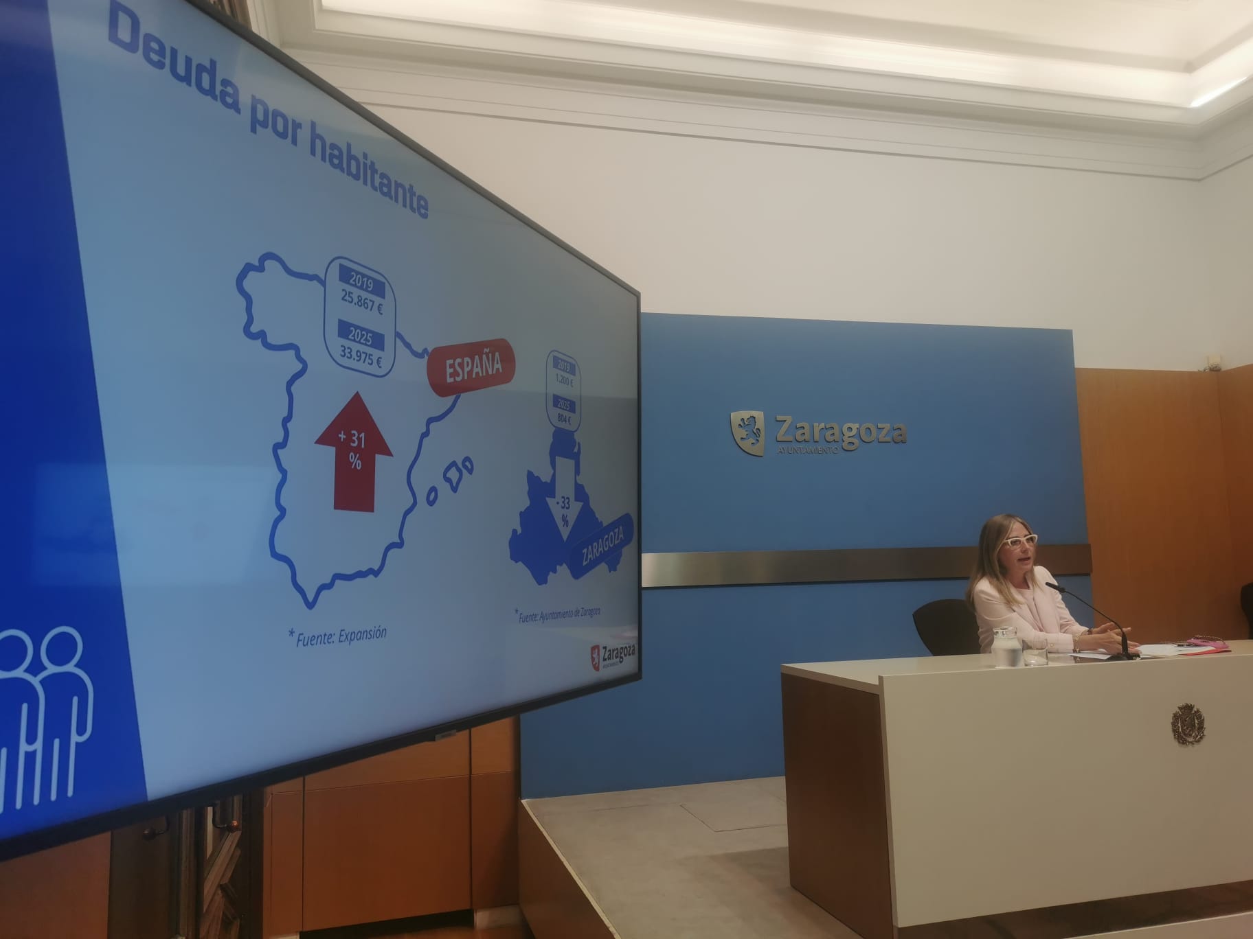 El alivio de la deuda por habitante es de 65 euros en el último año y, en comparación con junio de 2019, asciende ya a 396 euros por cada persona que reside en Zaragoza.