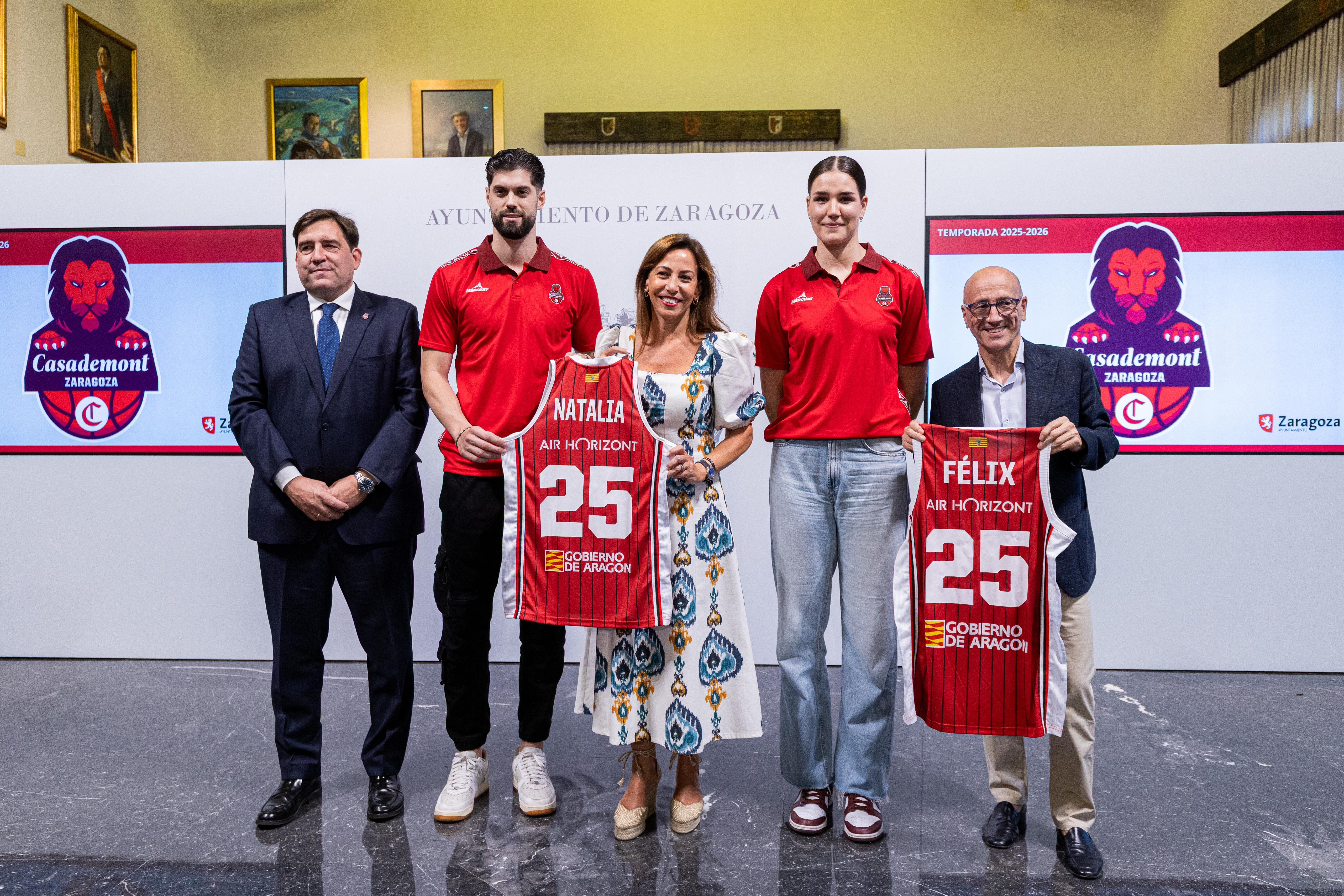 El Ayuntamiento de Zaragoza ha recibido hoy a los equipos masculino y femenino del Casademont Zaragoza que, una temporada más, competirán en la máxima categoría del baloncesto nacional. La alcaldesa Natalia Chueca ha deseado suerte a todos los jugadores, jugadoras, directiva y cuadros técnicos, para alcanzar los objetivos en esta nueva campaña. Han asistido también el concejal delegado de Deportes, Félix Brocate, el consejero de Presidencia, Ángel Lorén, y representantes de los grupos municipales.