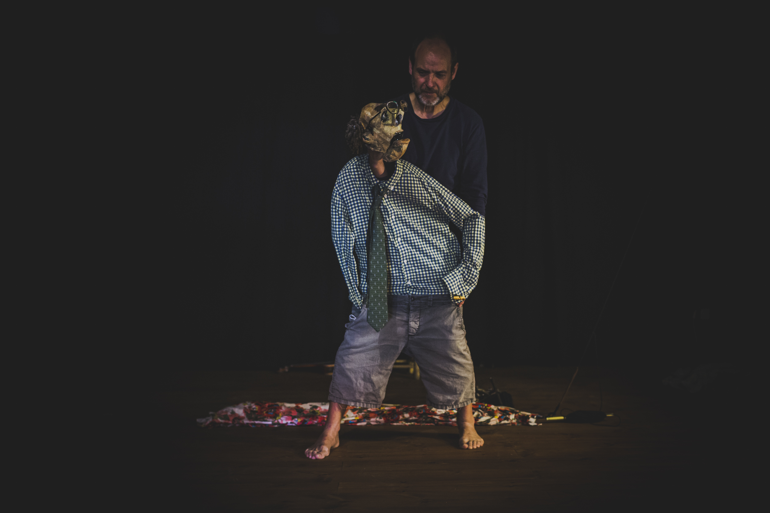 El espectáculo reflexiona sobre la esencia del teatro y el sentido profundo del oficio de actor. El juego teatral permite ser lo que no somos, habitar lugares y tiempos que no hemos conocido y vivir experiencias ajenas a nuestra realidad. Actor y marioneta piden al público sacralizar el espacio escénico, dejar de lado las banalidades, derruir sus límites y dejarse arrastrar por la corriente teatral hasta el trágico final.