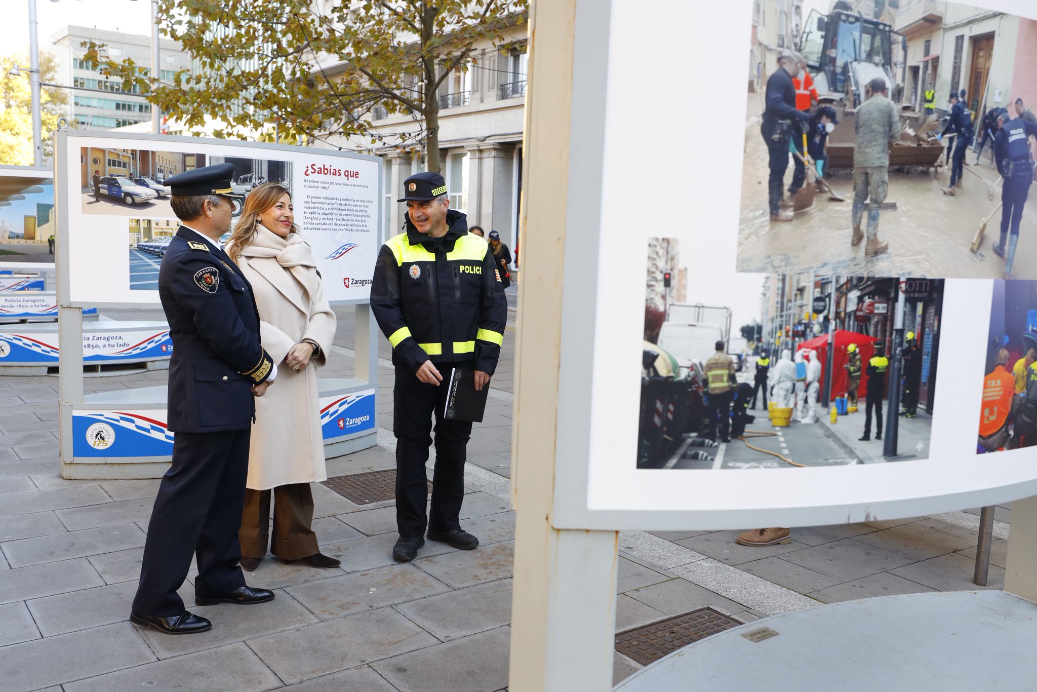 La alcaldesa de Zaragoza, Natalia Chueca, ha inaugurado este mediodía la exposición al aire libre con la que la Policía Local conmemora su