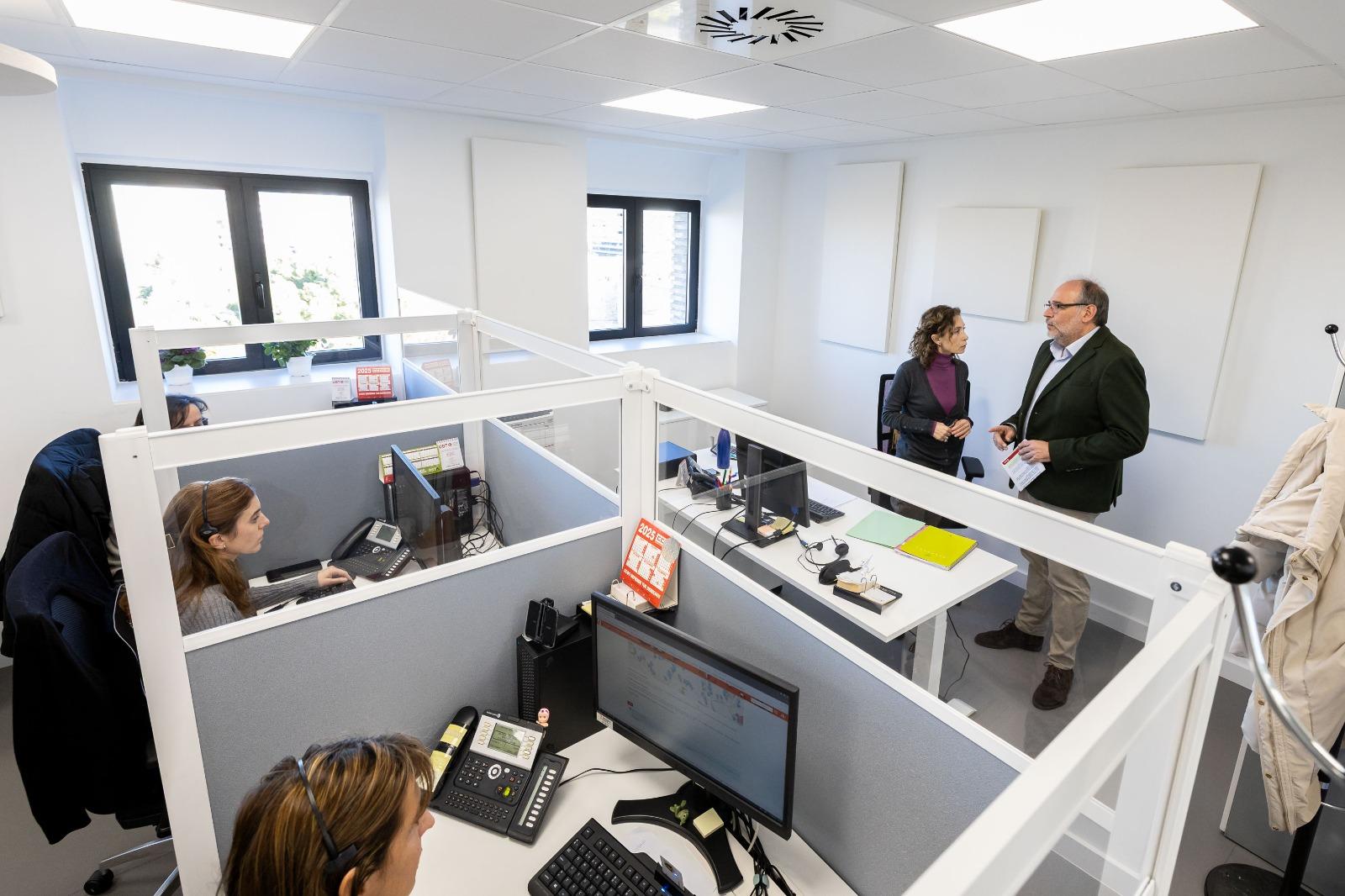 El edil ha visitado hoy el nuevo espacio renovado donde ahora se ubica este servicio, en la tercera planta de la Casa Consistorial, que cuenta, tras su reforma, con nuevas cabinas insonorizadas, paneles acústicos para evitar la reverberación y un display para ordenar e informar de la entrada de llamadas, además de mayor espacio y mejor iluminación.