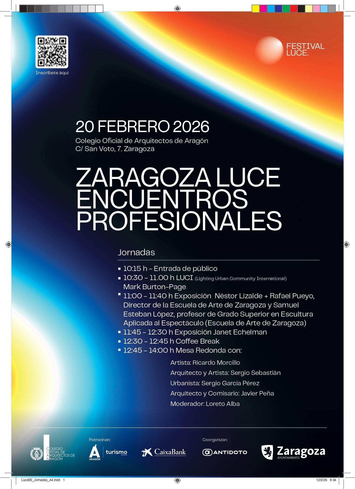 Estos Encuentros Profesionales forman parte de la programación de Zaragoza Luce, festival organizado por el Ayuntamiento de Zaragoza y Antídoto, que cuenta con el patrocinio de CaixaBank y Turismo de Aragón, y la colaboración de RTVE. Esta iniciativa ha consolidado el posicionamiento estratégico de la ciudad en el mapa internacional de los festivales de luz y cultura contemporánea.