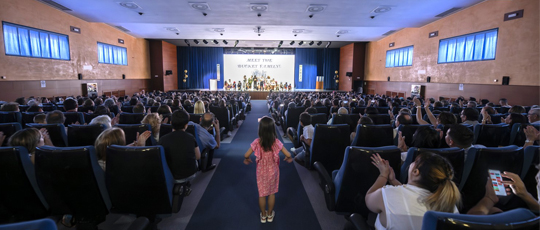 Disponemos de un salón de actos con capacidad para 500 personas, equipado con un servicio de circuito cerrado de transmisión de vídeo y una pantalla LED de alta definición de grandes dimensiones, con la posibilidad de emitir en streaming y grabar la sesión.
