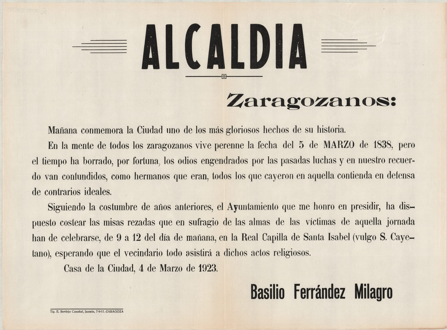 Las Fiestas del Pilar eran, como lo son hoy, el gran acontecimiento del año en Zaragoza. Pero no el único: el carnaval, el Cinco de Marzo, la Semana Santa u otras celebraciones tan curiosas como la Fiesta del Árbol jalonaban los meses de los zaragozanos y zaragozanas.