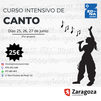 Curso intensivo de canto que se va a desarrollar a finales de junio en la Zona Joven Casco Viejo con el objetivo de atraer a personas para el curso anual que comenzará en octubre, finalizando con el concierto Combos de 2025.