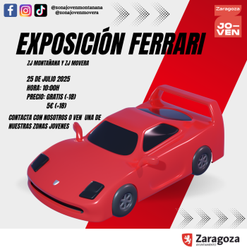 Prepárate para una salida a Mobility City, en Zaragoza, para visitar una impresionante exposición de coches Ferrari. Los y las jóvenes podrán disfrutar de algunos de los modelos más emblemáticos de la marca, conocer su historia y descubrir cómo ha evolucionado la tecnología del motor. ¡No te lo pierdas!