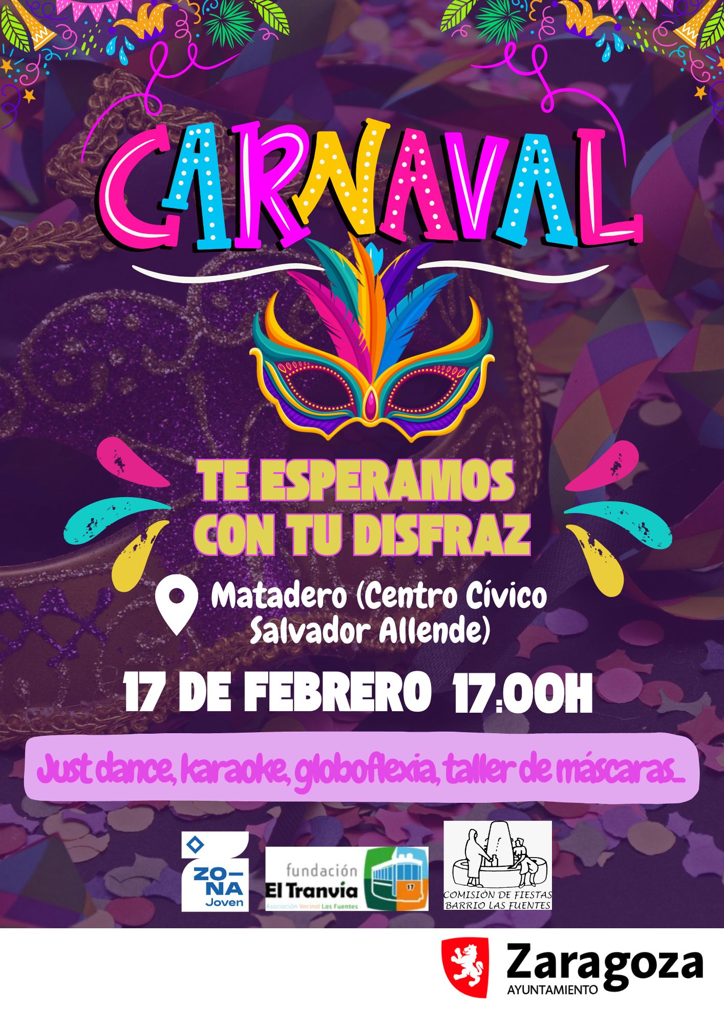 ¿Quieres pasar una tarde divertida? Los educadores de la zona joven, fundación el tranvía y la comisión de fiestas del barrio, te esperamos en el Centro Cívico Salvador Allende (Zona Joven Las Fuentes). Con just dance, karaoke, globoflexia, decoración de máscaras y música.