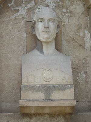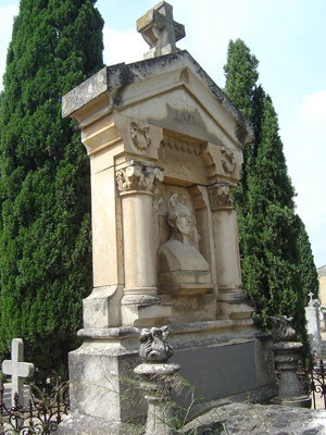 - Busto en mármol de Carrara, edículo y túmulo en piedra caliza.
