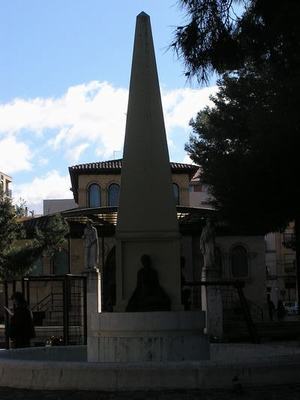 - bronce (los relieves decorando el obelisco) y piedra artificial (las dos musas)