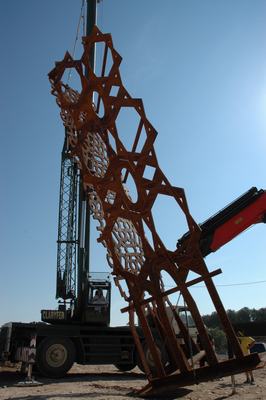 El 6 de agosto de 2004 se convoca un concurso para dotar de esculturas cuatro nuevas plazas y las dos rotondas de ingreso al barrio de Valdesparera. El fallo del concurso tuvo lugar el 28 de octubre de 2004, pero no se hizo público hasta el 12 de noviembre, con motivo de la exposición celebrada en la Cámara de Comercio con todos los proyectos realizados. En este caso se tuvo en cuenta que la propuesta no restaba visibilidad al tráfico y que aludía a la cultura mudéjar, al evocar dos lados de una torre, uno de los cuales está decorado con una celosía que se inspira en el Muro de la Parroquieta de la Seo, y el otro utiliza como motivo decorativo una estrella mudéjar expandida.