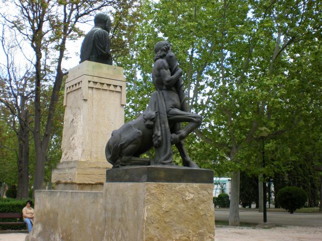 - Piedra (basamento y centauro) y bronce (busto)