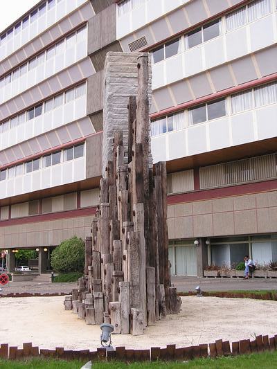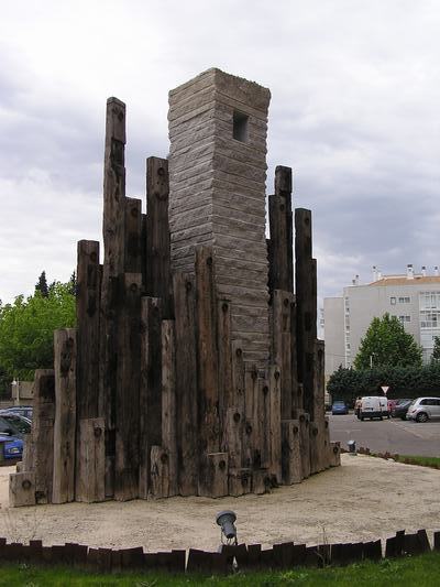 Aunque la elevación de un gran prisma de granito pueda asemejarlo a Ulrich Rückriem, y la ventanita en su parte superior recuerde a las del bosque de menhires de Manolo Paz en La Coruña, este Monumento al Paciente parece inspirarse sobre todo en el famoso Giant's Causeway en la costa de Antrim (Irlanda del Norte). Lo de menos es la referencia, que muy bien podría conocer un impenitente viajero cosmopolita como es Vicente García Plana; importa sobre todo destacar que mientras que los autores arriba citados se sirven de piezas aisladas o colocadas a cierta distancia unas de otras, aquí encontramos la piedra y las maderas apiñados en masas piramidales cuasi geológicas. El efecto de conjunto queda realzado por la colocación de esas argollas de hierro en lo alto de cada traviesa de madera, que subrayan en forma circular su carácter macizo y a la vez las aberturas de sus vetas verticales, mientras que el bloque de granito lleva marcas de cantera horizontales y esa oquedad geométrica que, en cambio, enmarca un incorpóreo vacío.