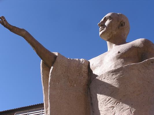Migue Ángel Sáinz Jiménez ( Aldeanueva de Ebro, 1955-2001) Estudió en la Facultad de Bellas Artes de la Universidad Complutense de Madrid. Comenzó su labor artística en el campo de la pintura, pero al producirse encargos escultóricos en el ámbito público, inició su andadura por éste género. A lo largo de su basta producción ha sabido impregnar a sus obras, tanto: esculturas, pinturas, arquitecturas, vidrieras, etc. de una original formalidad estilística.