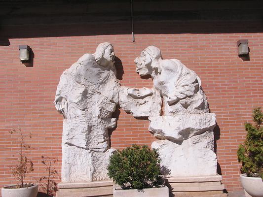- El ángel se instaló en 2001 y el relieve del abrazo unos años antes