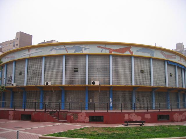La llegada de los años ochenta estuvo caracterizada, entre otros aspectos, por la creación de centros cívicos en los barrios de la ciudad, con el objetivo de descentralizar las actividades culturales y acercarlas a la ciudadanía. En algunos casos se procedió a la construcción ex novo de los mismos, pero en otros se optó por la rehabilitación de edificios preexistentes, como fue el caso del antiguo matadero, reconvertido en Centro Cívico Salvador Allende, o el antiguo mercado de pescados. Fue en este inmueble donde se decidió instalar el centro cívico que demandaba Delicias, uno de los barrios más poblados de la ciudad. El arquitecto Carlos Miret fue el encargado de proyectar la rehabilitación del inmueble, que se convirtió en uno de los centros más completos de Zaragoza. La reforma se llevó a cabo entre 1986 y 1987, y, al igual que en el caso de la sede del PSOE, Miret adoptó la práctica del 1% cultural como un modo de fomentar la creación, dotar con equipamiento artístico a las nuevas instalaciones y acercar las nuevas manifestaciones artísticas a los ciudadanos. Sergio Abraín, Miguel Ángel Arrudi y Miguel Ángel Encuentra fueron los artistas elegidos por Miret para realizar la equitación artística del inmueble, que consistió en la creación de una serie de pinturas para el nuevo centro