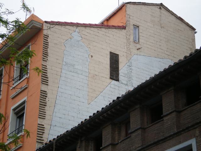 En el medianil se representaba una sencilla composición consistente en la reproducción de la silueta de una torre, en alusión a la torre de San Pablo. La pintura fue realizada directamente sobre la superficie del muro, pintando el fondo en amarillo, y en gris la silueta. La obra original se realizó en 1988, pero con la ampliación del inmueble colindante, el mural fue completamente tapado. En sustitución del mismo, se realizó este mural de iguales características en la medianera derecha del mismo edificio.