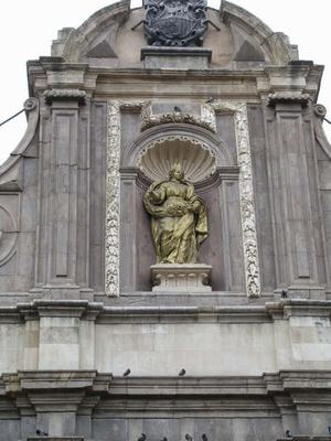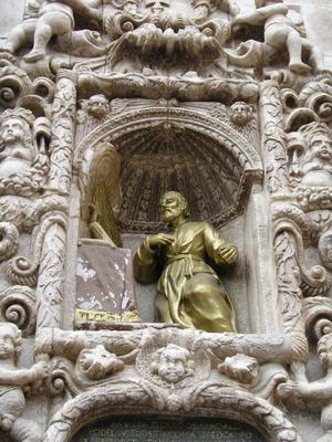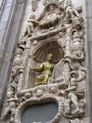 La profusa decoración barroca con el escudo de Aragón, fue labrada por Jaime Ayet y Francisco Pérez de Artigas. Las estatuas de Santa Isabel, San Cayetano y San Andrés Avelino, posiblemente fueron realizadas por Francisco Villanoba, aunque otras fuentes las atribuían a Gregorio de Mesa.