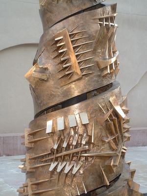 La expresividad de Torre Spirale también es característica del autor por sus texturas, que generan un juego permanente entre exterior-interior. Y la pieza viene rematada en superficie por unos acabados impecables, entre los que destaca la nobleza de los cuidados bronces, señales evidentes de la precisión y el oficio escultórico del artista.