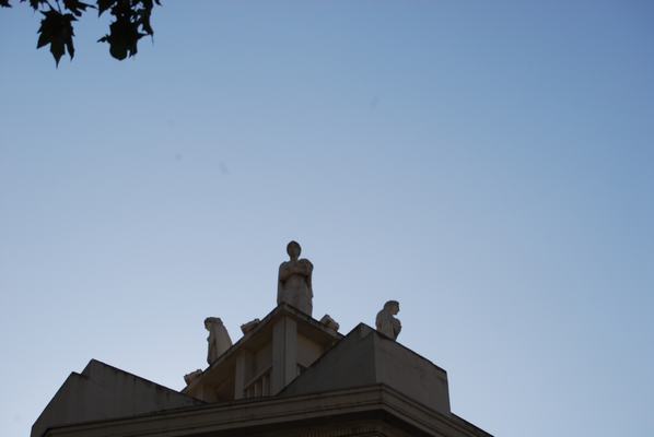 Alegorías de las Musas en las fachadas delantera y trasera del Teatro Principal